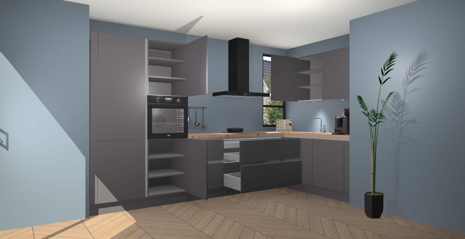 Welkom in uw nieuwe moderne keuken! Laat ons u voorstellen aan de Onyxgrijze greeploze keuken Vlaanderen . Deze prachtige hoekkeuken straalt exclusiviteit en luxe uit als geen ander. Het strakke design, de tijdloze kleuren en het greeploze model maken van deze keuken een moderne klassieker. En met voldoende opbergruimte heeft deze keuken echt voor ieder wat wils.