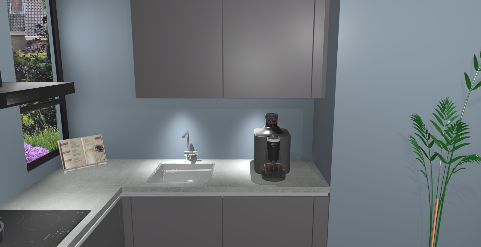 - De spoelbak is nog niet in gevreesd. Dit dient tijdens het werk gedaan te worden