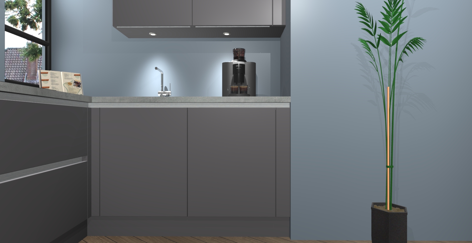 In deze box zijn alle kleuren verzameld van de deuren en werkbladen. Vraag de gratis kleurenbox aan en kijk thuis rustig verder!