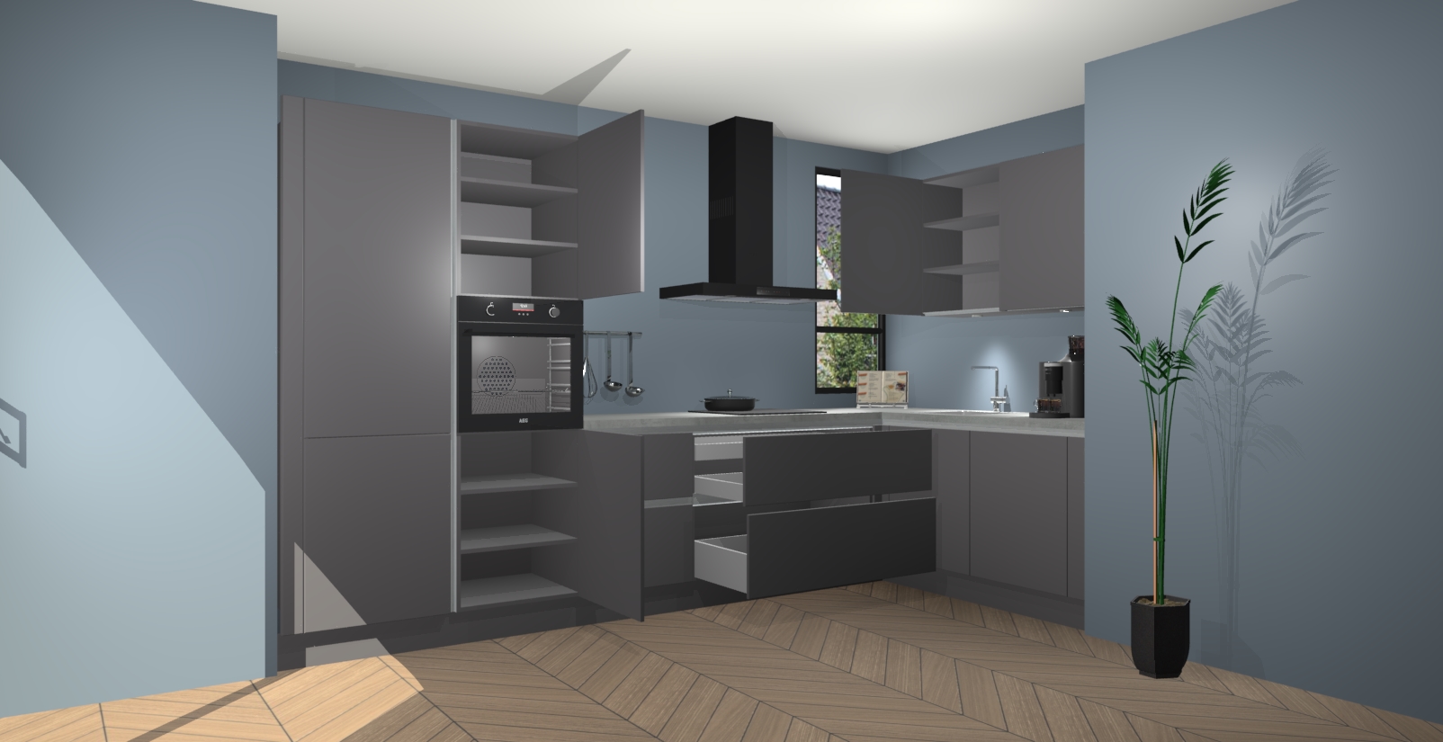 Welkom in uw nieuwe moderne keuken! Laat ons u voorstellen aan de Onyxgrijze greeploze keuken Vlaanderen . Deze prachtige hoekkeuken straalt exclusiviteit en luxe uit als geen ander. Het strakke design, de tijdloze kleuren en het greeploze model maken van deze keuken een moderne klassieker. En met voldoende opbergruimte heeft deze keuken echt voor ieder wat wils.