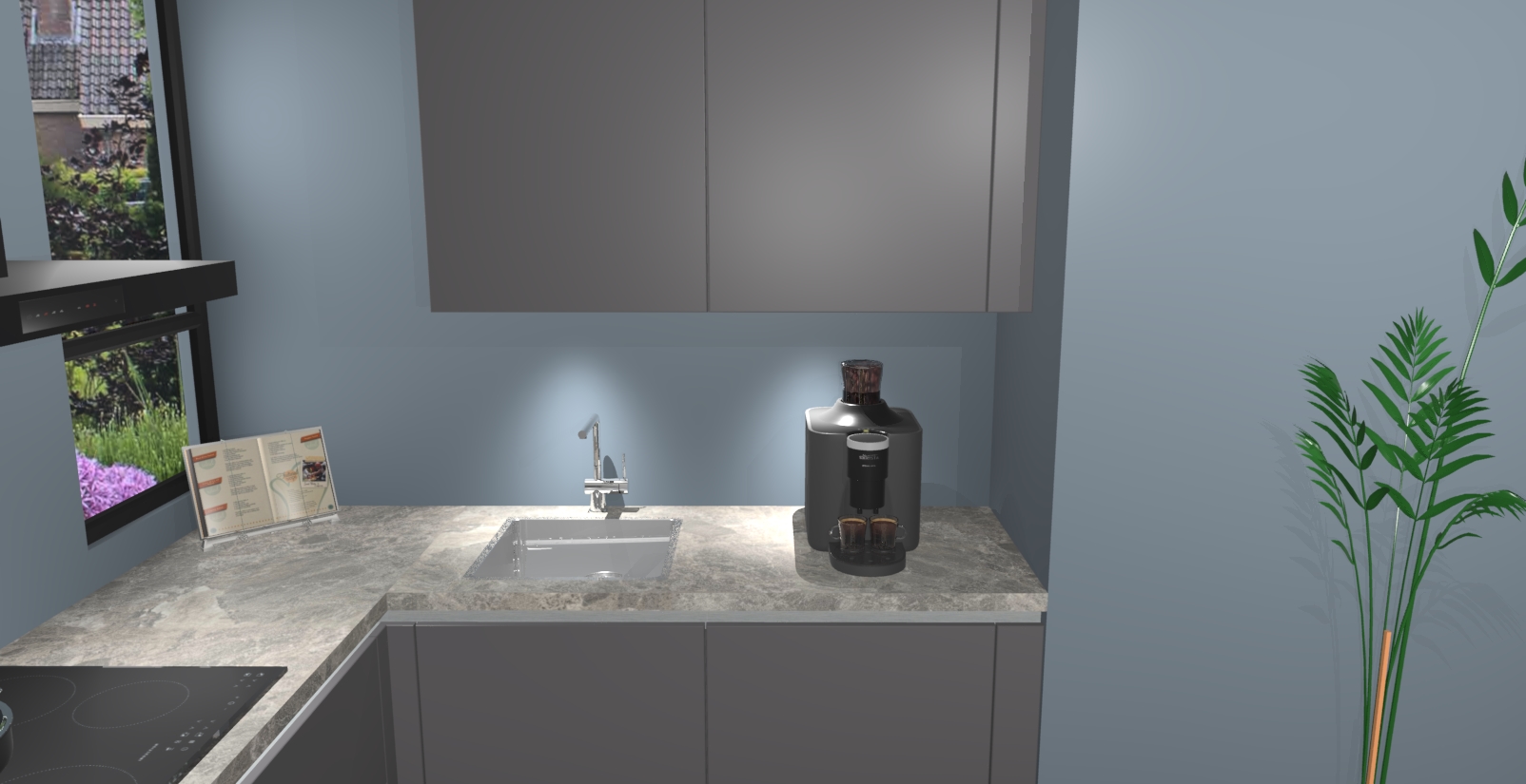 - De spoelbak is nog niet in gevreesd. Dit dient tijdens het werk gedaan te worden