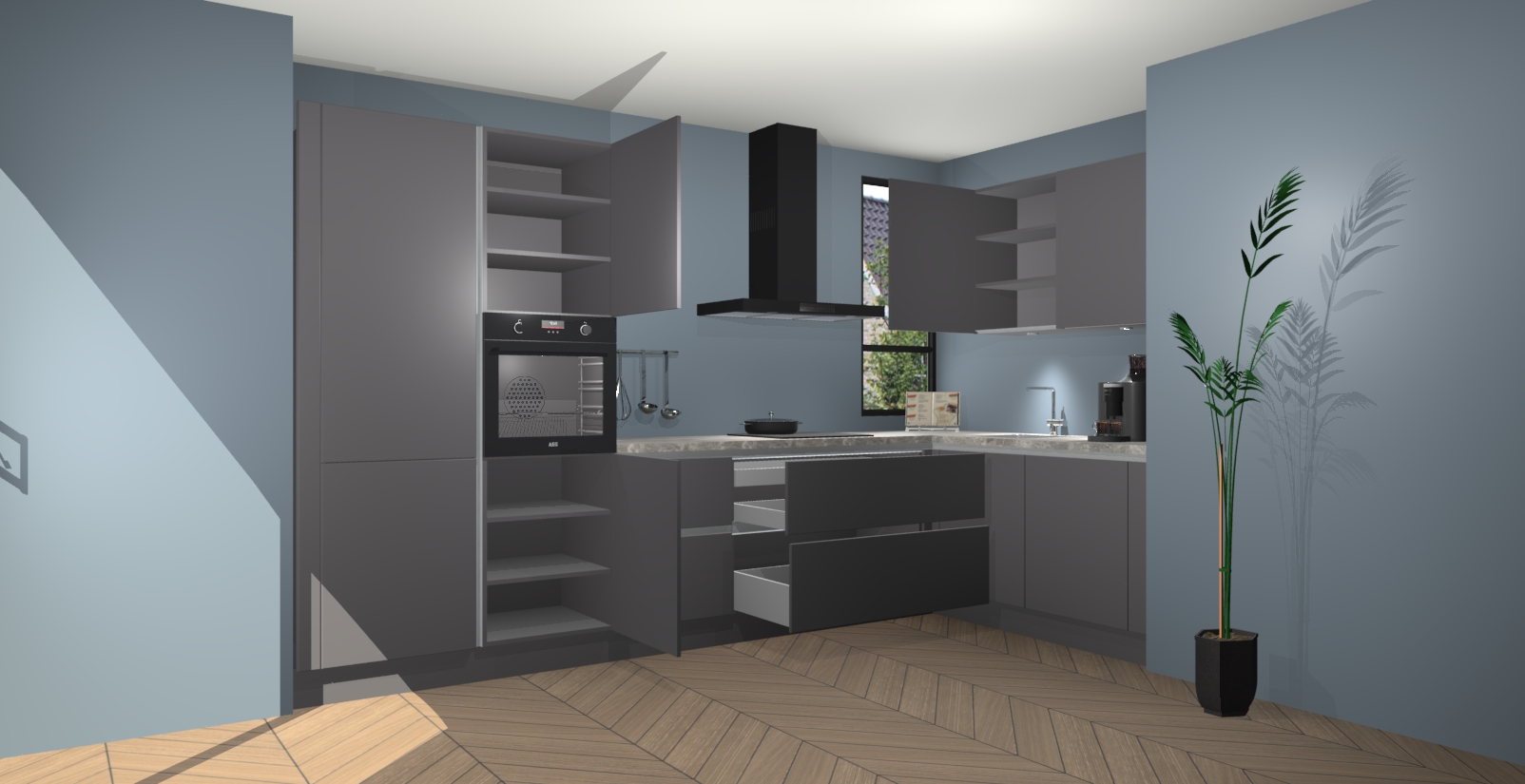 Welkom in uw nieuwe moderne keuken! Laat ons u voorstellen aan de Onyxgrijze greeploze keuken Vlaanderen . Deze prachtige hoekkeuken straalt exclusiviteit en luxe uit als geen ander. Het strakke design, de tijdloze kleuren en het greeploze model maken van deze keuken een moderne klassieker. En met voldoende opbergruimte heeft deze keuken echt voor ieder wat wils.