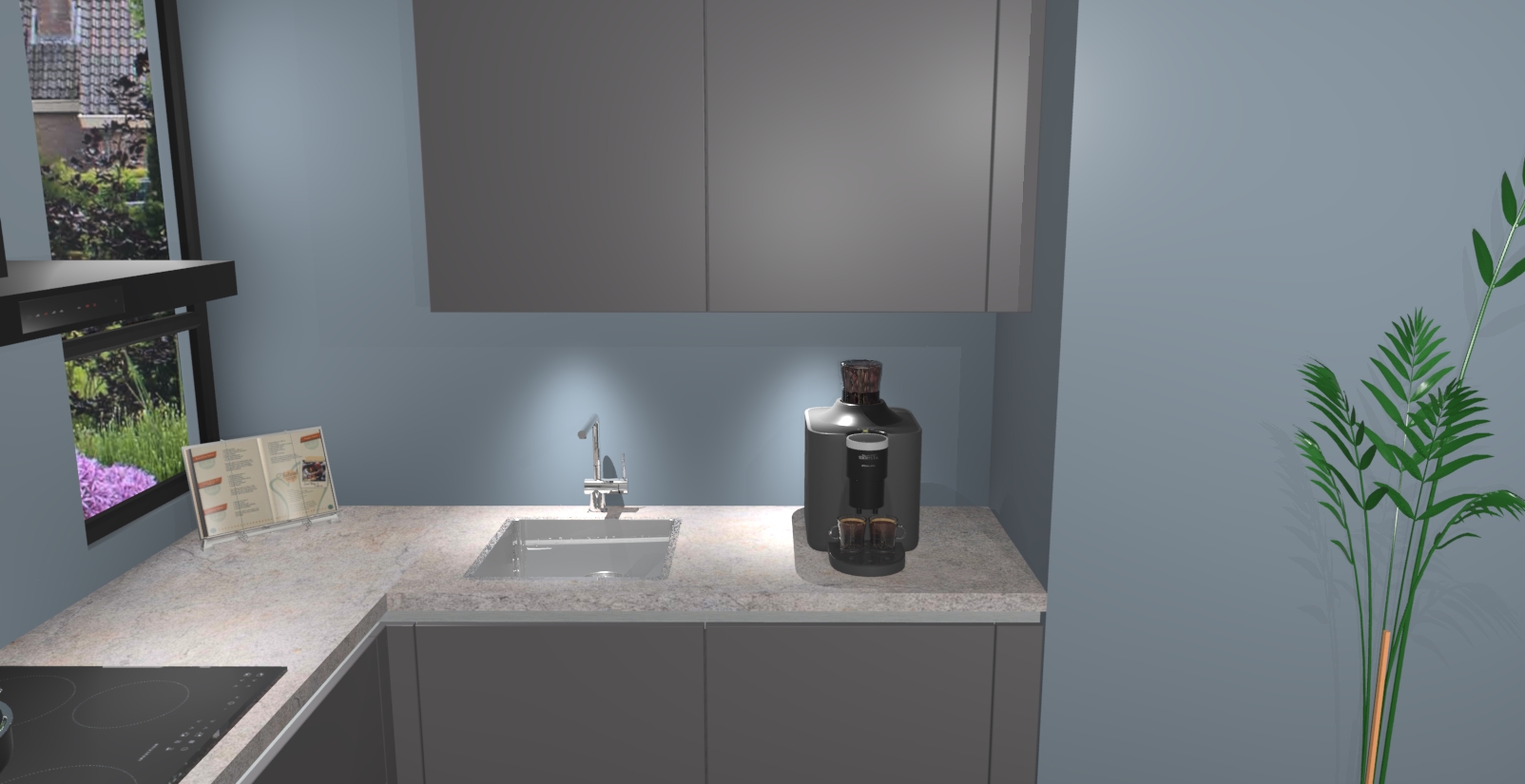 - De spoelbak is nog niet in gevreesd. Dit dient tijdens het werk gedaan te worden