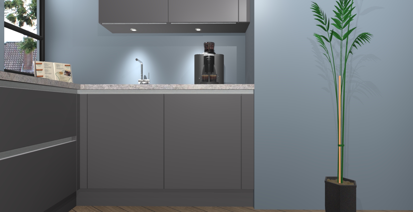 In deze box zijn alle kleuren verzameld van de deuren en werkbladen. Vraag de gratis kleurenbox aan en kijk thuis rustig verder!
