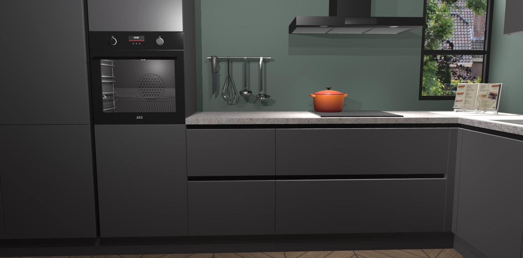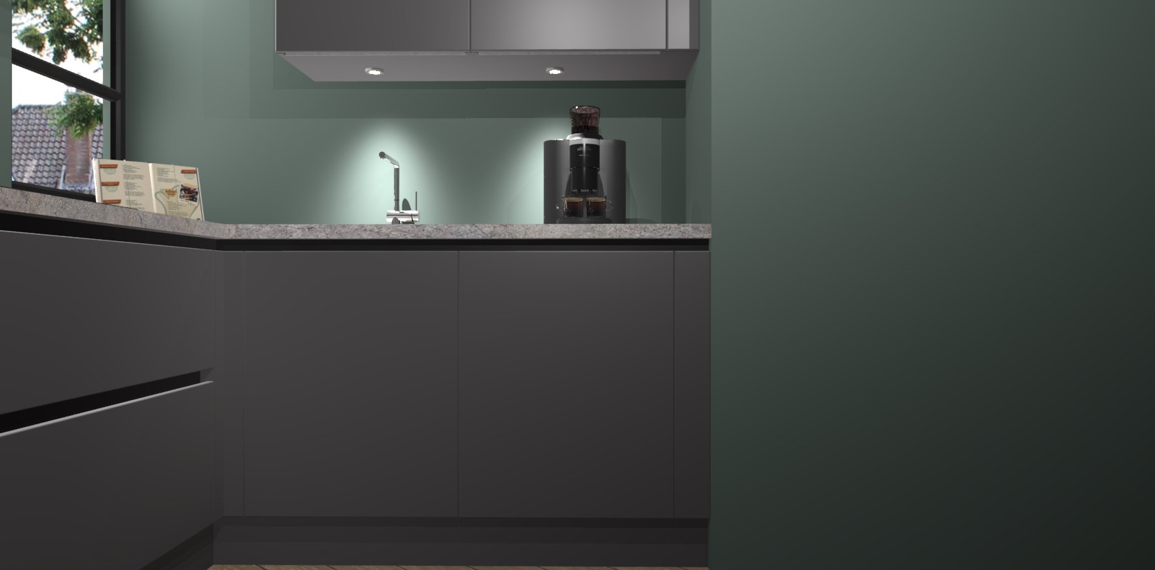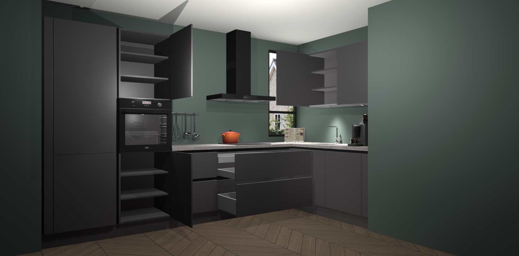 Welkom in uw nieuwe moderne keuken! Laat ons u voorstellen aan de Onyxgrijze greeploze keuken Vlaanderen. Deze prachtige hoekkeuken straalt exclusiviteit en luxe uit als geen ander. Het strakke design, de tijdloze kleuren en het greeploze model maken van deze keuken een moderne klassieker. En met voldoende opbergruimte heeft deze keuken echt voor ieder wat wils.