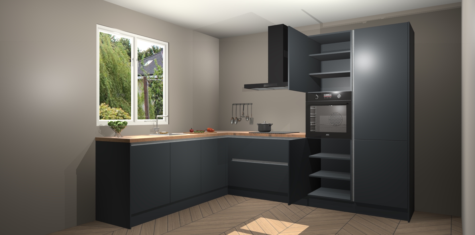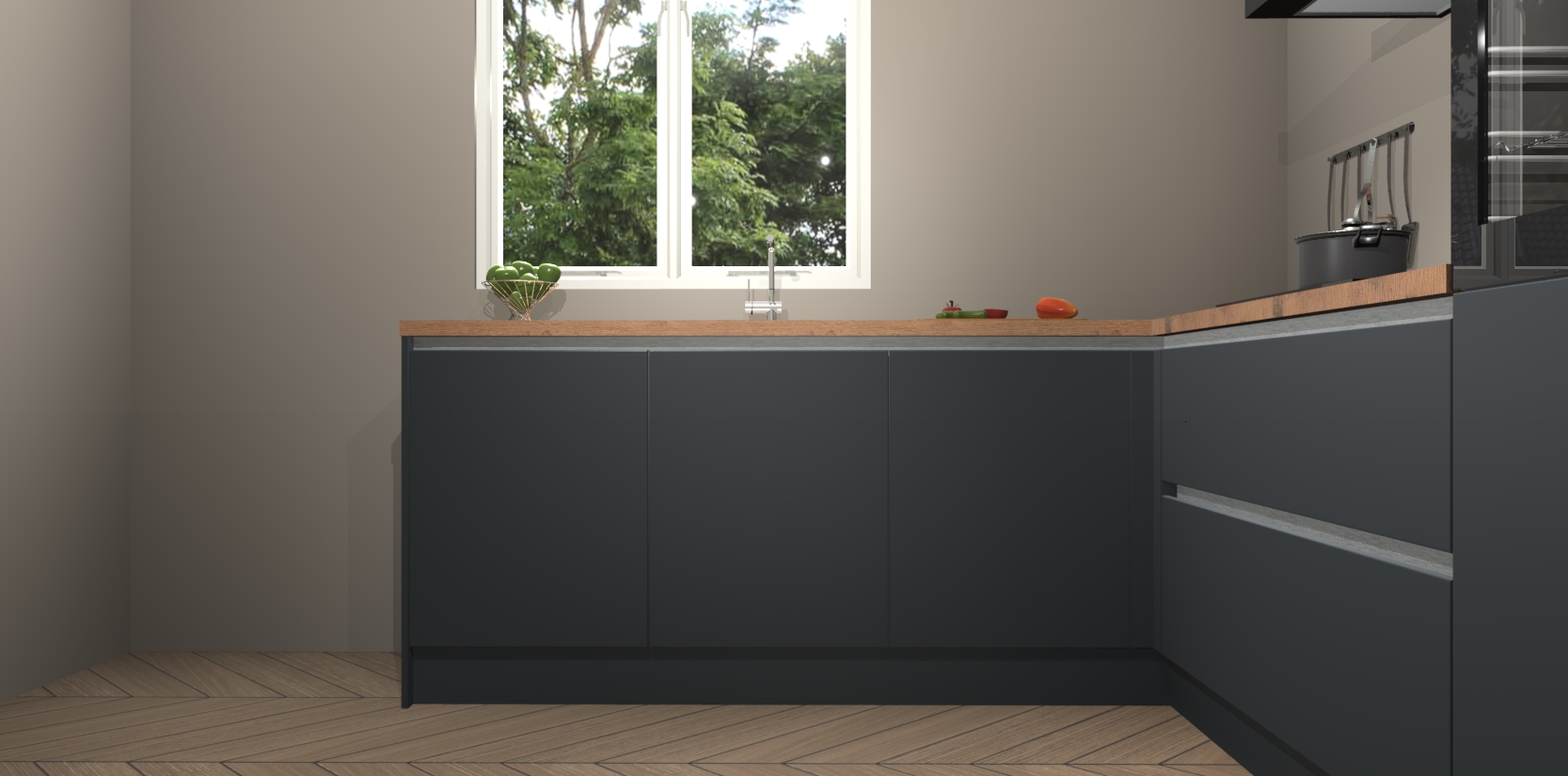 Laat u overtuigen door deze prachtige Onyxgrijze greeploze keuken Willemstad! Verlies uzelf in dit moderne en tijdloze ontwerp, dat perfect is aangepast aan uw behoeftes. Er is veel opbergruimte die u kunt gebruiken om al uw kookbenodigdheden optimaal te organiseren.