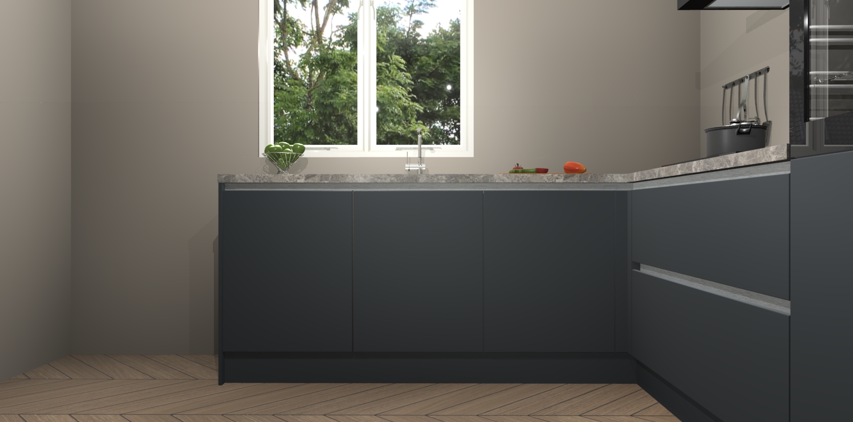 Aan prijs betekent het geen concessie doen, want de Onyxgrijze greeploze  keuken Willemstad stelt alles op een vast tarief voor! U kunt er ook zeker van zijn dat het product met 7 weken bij u thuis wordt afgeleverd. En zoals de kers op de taart komen de kastjes reeds geassembleerd binnengereden... wat wilt u nog meer? We zeiden het al: ga voor dit unieke model, de Onyxgrijze greeploze keuken Willemstad waarmee uw keukenspul en keuken echt tot leven kan komen!