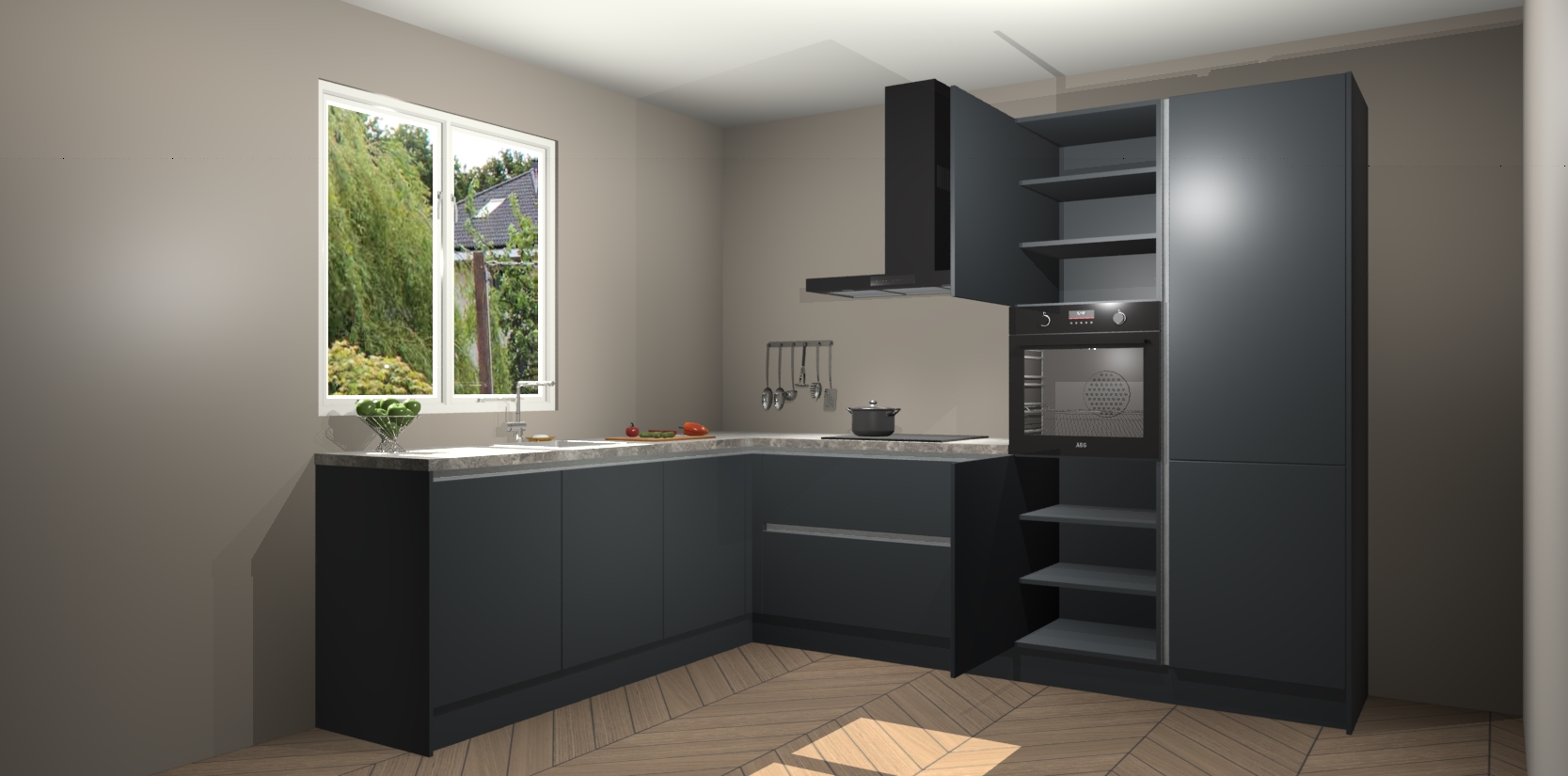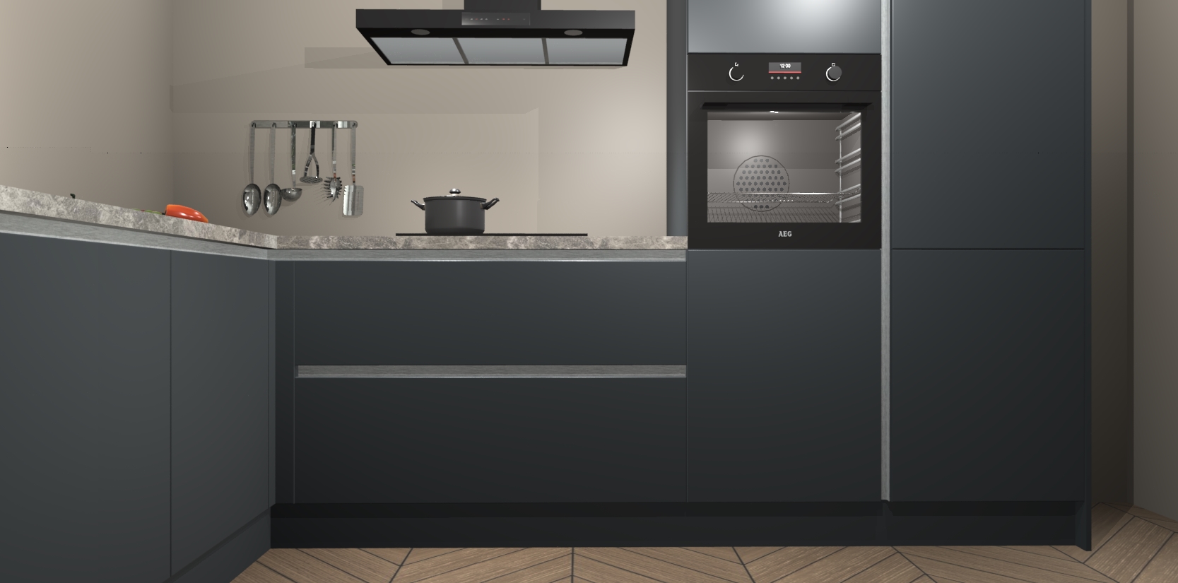 Laat u overtuigen door deze prachtige Onyxgrijze greeploze keuken Willemstad! Verlies uzelf in dit moderne en tijdloze ontwerp, dat perfect is aangepast aan uw behoeftes. Er is veel opbergruimte die u kunt gebruiken om al uw kookbenodigdheden optimaal te organiseren.