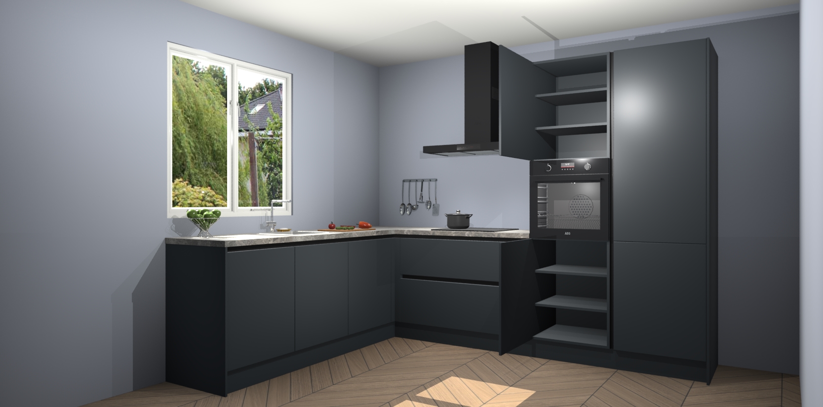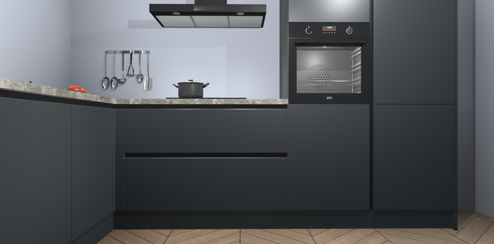 Laat u overtuigen door deze prachtige Onyxgrijze greeploze keuken Willemstad! Verlies uzelf in dit moderne en tijdloze ontwerp, dat perfect is aangepast aan uw behoeftes. Er is veel opbergruimte die u kunt gebruiken om al uw kookbenodigdheden optimaal te organiseren.