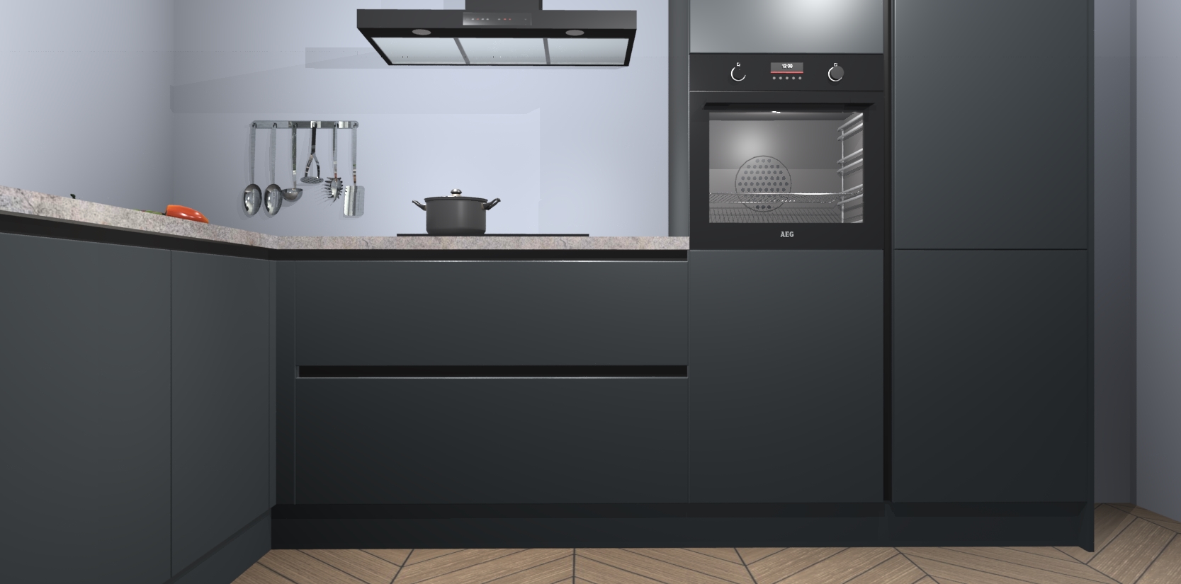 Veel meer dan dat: met de aankoop van deze keuken krijgt u maar liefst 5 ingebouwde huishoudtoestellen, zoals een oven, inductiekookplaat, afzuigkap, vaatwasser en koelkast. Ze zijn makkelijk te upgraden naar AEG of bijvoorbeeld van oven naar een combimagnetron na bestelling. En alsof dat nog niet genoeg is hebben de kastjes allemaal softclose deuren voor extra comfort en luxe!