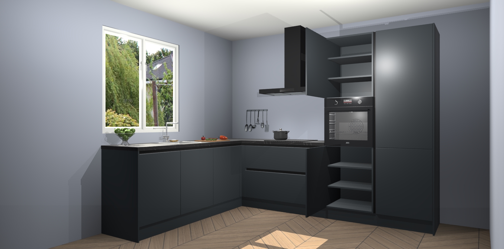Laat u overtuigen door deze prachtige Onyxgrijze greeploze keuken Willemstad! Verlies uzelf in dit moderne en tijdloze ontwerp, dat perfect is aangepast aan uw behoeftes. Er is veel opbergruimte die u kunt gebruiken om al uw kookbenodigdheden optimaal te organiseren.