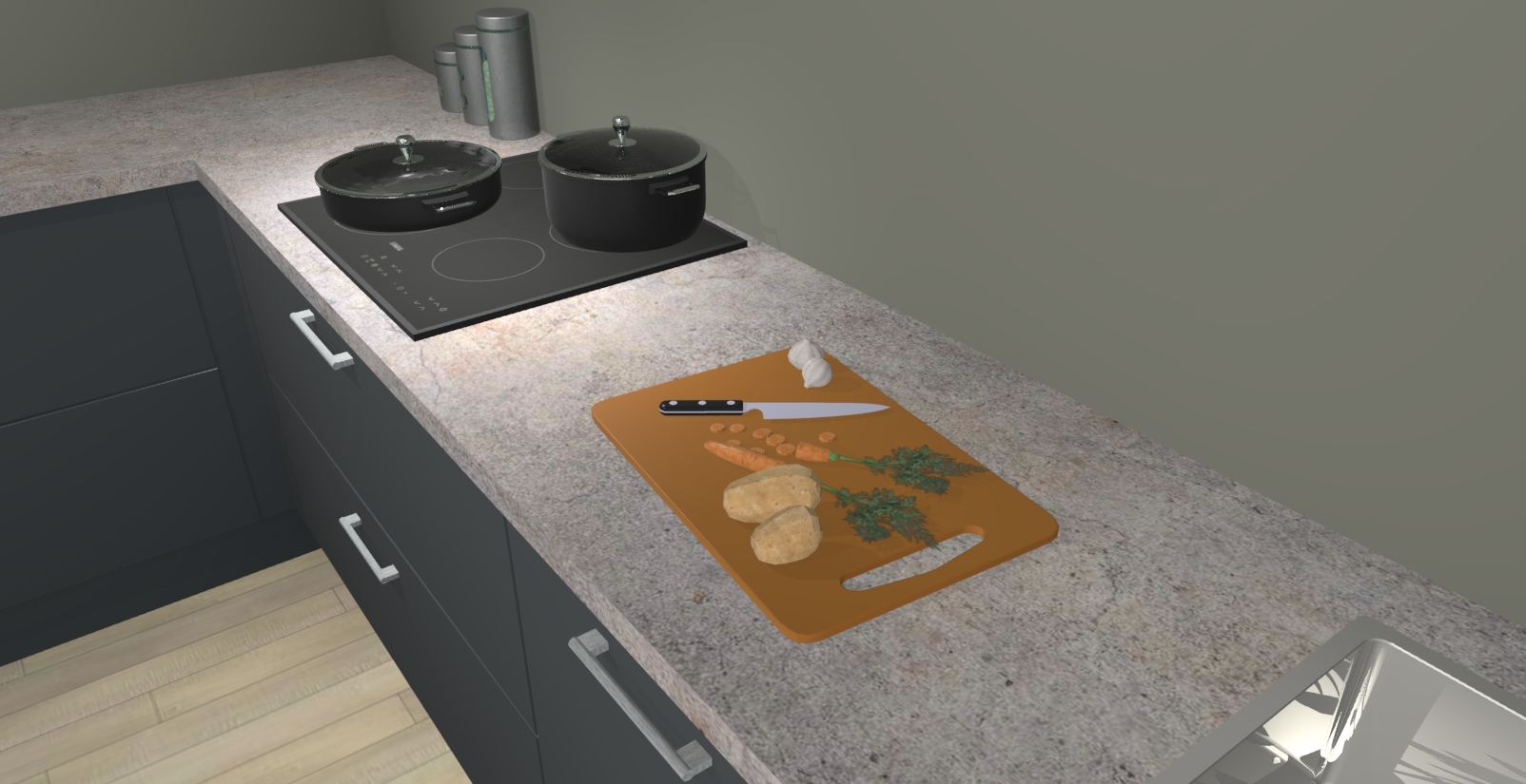 Inclusief plinten, stelpoten en werkblad