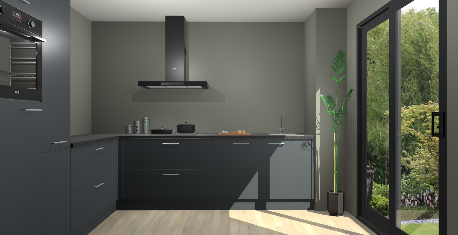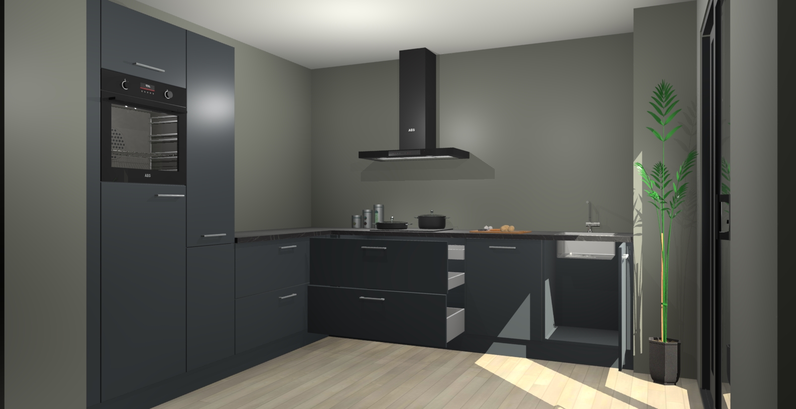 Laat u verrassen door de nieuwste en meest innovatieve keuken van dit moment: De Onyxgrijze keuken Antibes. Deze chique keuken straalt een stijlvolle sfeer uit die zeker bewondering zal oogsten bij uw gasten. Als u op zoek bent naar voldoende opbergruimte voor al uw keukengadgets en -gerei, dan is dit de perfecte oplossing. Met ingebouwde apparatuur zoals een oven, inductiekookplaat, afzuigkap, vaatwasser en koelkast! U krijgt niet alleen veel opbergruimte, maar ook een betrouwbaar soft close-deursysteem dat ervoor zorgt dat er nooit meer kastdeuren dichtslaan!