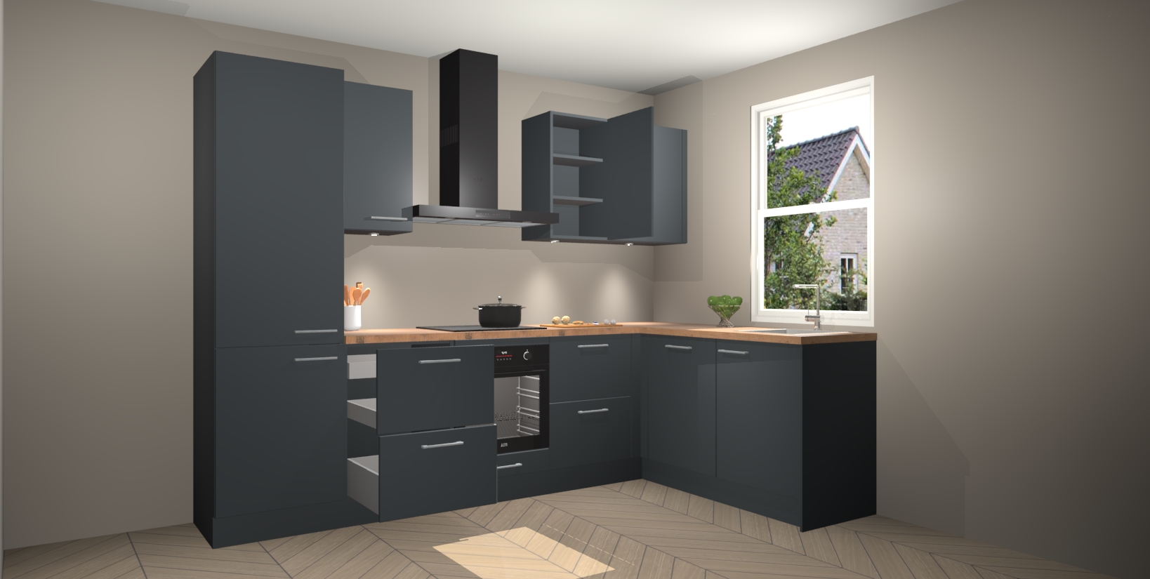 Maak kennis met de trendsettende en luxe Onyxgrijze keuken Bazel! Deze uitzonderlijke keuken van Duitse kwaliteit is stijlvol, modern en perfect om elk huis mee op te fleuren. De binnenkant van de kasten worden meegenomen in een bijpassende kleur om een samenhangende eigentijdse esthetiek te voltooien. U zult dol zijn op hoe uw pas gerenoveerde keuken eruitziet met de Onyxgrijze editie!