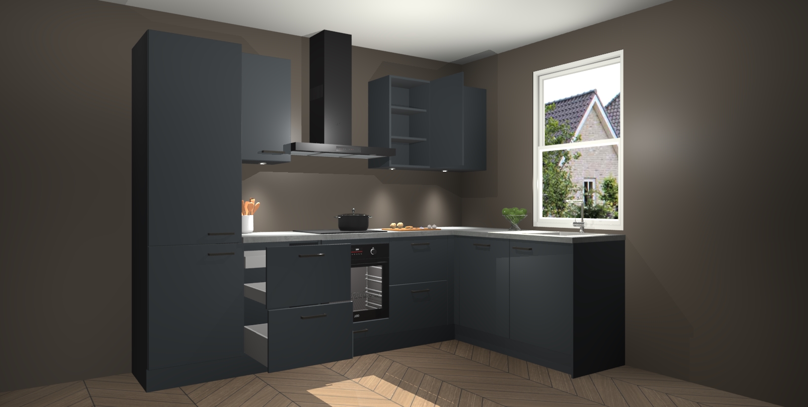 Maak kennis met de trendsettende en luxe Onyxgrijze keuken Bazel! Deze uitzonderlijke keuken van Duitse kwaliteit is stijlvol, modern en perfect om elk huis mee op te fleuren. De binnenkant van de kasten worden meegenomen in een bijpassende kleur om een samenhangende eigentijdse esthetiek te voltooien. U zult dol zijn op hoe uw pas gerenoveerde keuken eruitziet met de Onyxgrijze editie!