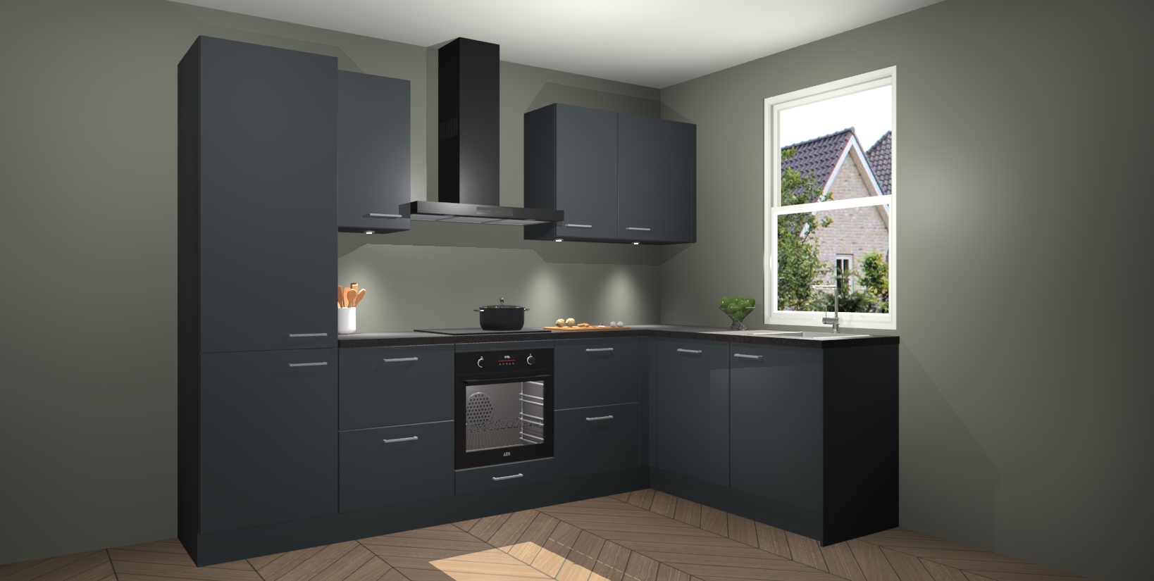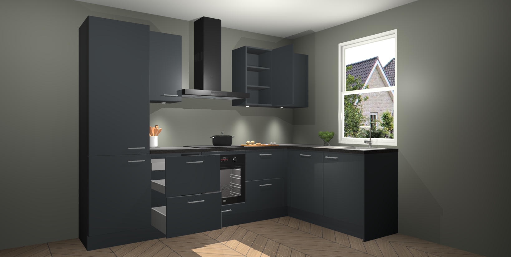 Maak kennis met de trendsettende en luxe Onyxgrijze keuken Bazel! Deze uitzonderlijke keuken van Duitse kwaliteit is stijlvol, modern en perfect om elk huis mee op te fleuren. De binnenkant van de kasten worden meegenomen in een bijpassende kleur om een samenhangende eigentijdse esthetiek te voltooien. U zult dol zijn op hoe uw pas gerenoveerde keuken eruitziet met de Onyxgrijze editie!