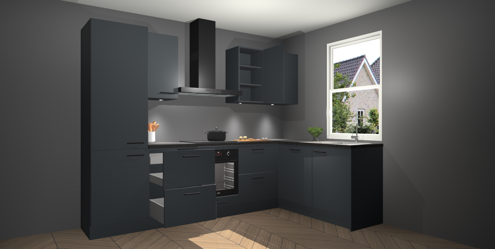 Maak kennis met de trendsettende en luxe Onyxgrijze keuken Bazel! Deze uitzonderlijke keuken van Duitse kwaliteit is stijlvol, modern en perfect om elk huis mee op te fleuren. De binnenkant van de kasten worden meegenomen in een bijpassende kleur om een samenhangende eigentijdse esthetiek te voltooien. U zult dol zijn op hoe uw pas gerenoveerde keuken eruitziet met de Onyxgrijze editie!