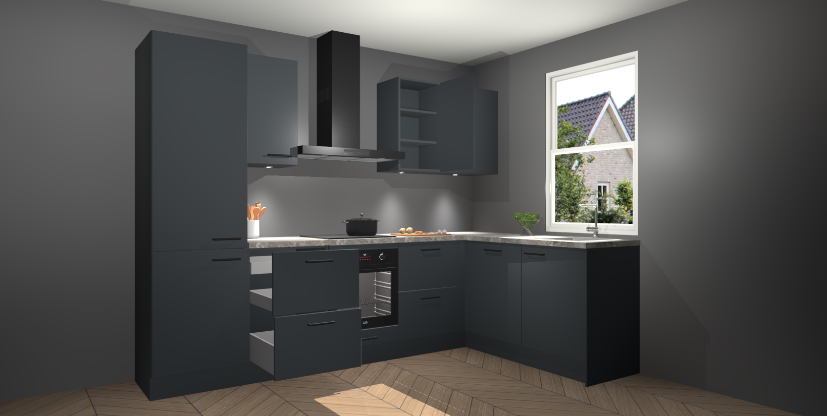 Maak kennis met de trendsettende en luxe Onyxgrijze keuken Bazel! Deze uitzonderlijke keuken van Duitse kwaliteit is stijlvol, modern en perfect om elk huis mee op te fleuren. De binnenkant van de kasten worden meegenomen in een bijpassende kleur om een samenhangende eigentijdse esthetiek te voltooien. U zult dol zijn op hoe uw pas gerenoveerde keuken eruitziet met de Onyxgrijze editie!