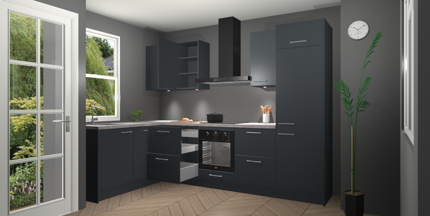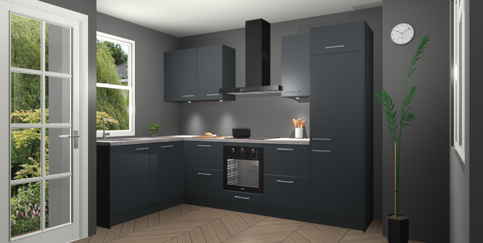 Bent u op zoek naar een strakke, moderne hoekkeuken die uw huis oppept en een moderne uitstraling geeft? Kijk dan niet verder dan de onyxgrijze keuken Beijing. Deze verbluffende hoekkeuken tilt hedendaags design naar een hoger niveau. Qua stijl is deze chique hoekkeuken voorzien van onyxgrijze accenten, om een strakke maar opvallende look te creëren. De binnenkant van de kasten is afgewerkt in dezelfde prachtige onyxgrijze kleur voor extra esthetische aantrekkingskracht.