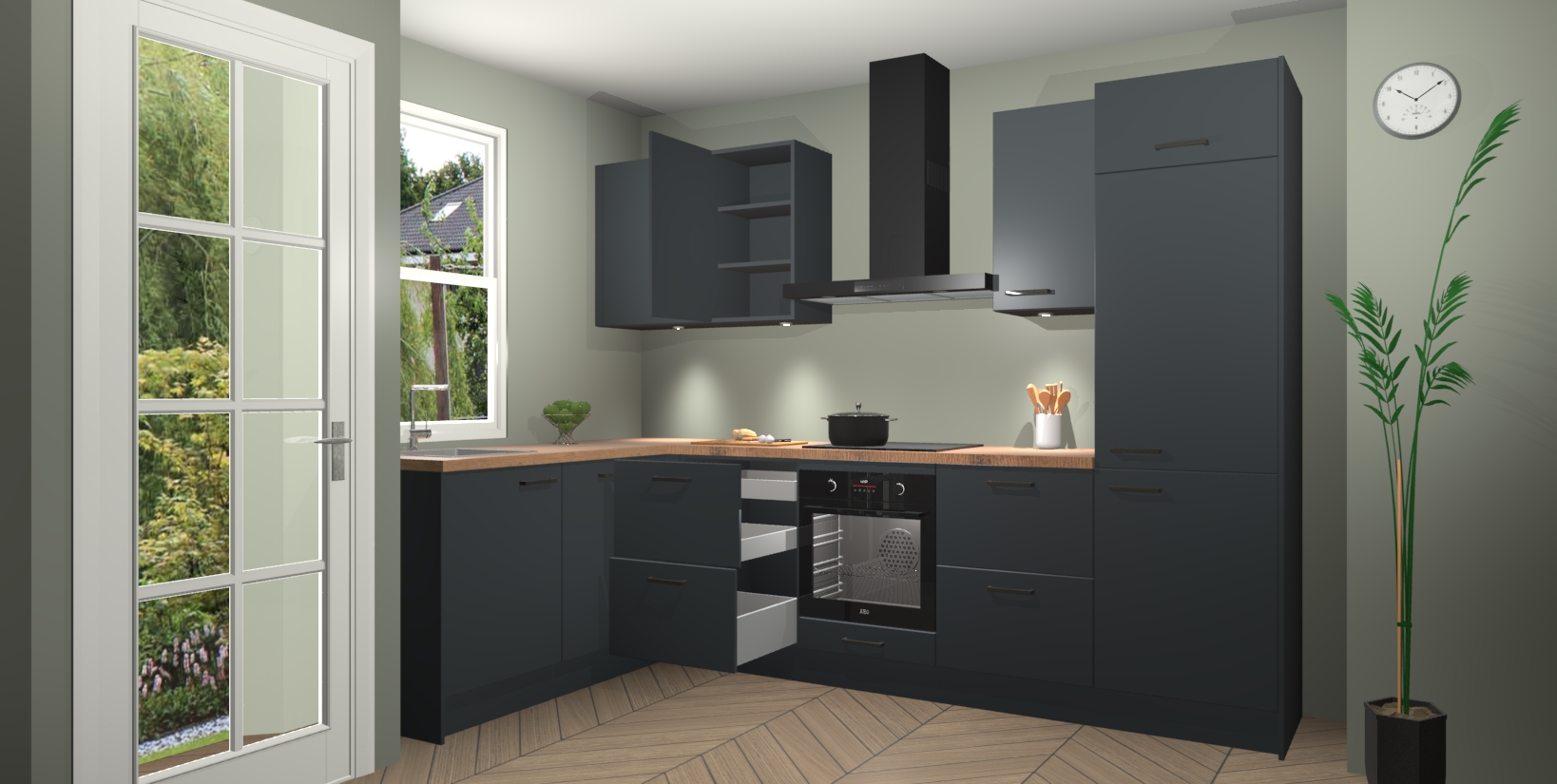 Inclusief plinten, stelpoten en werkblad