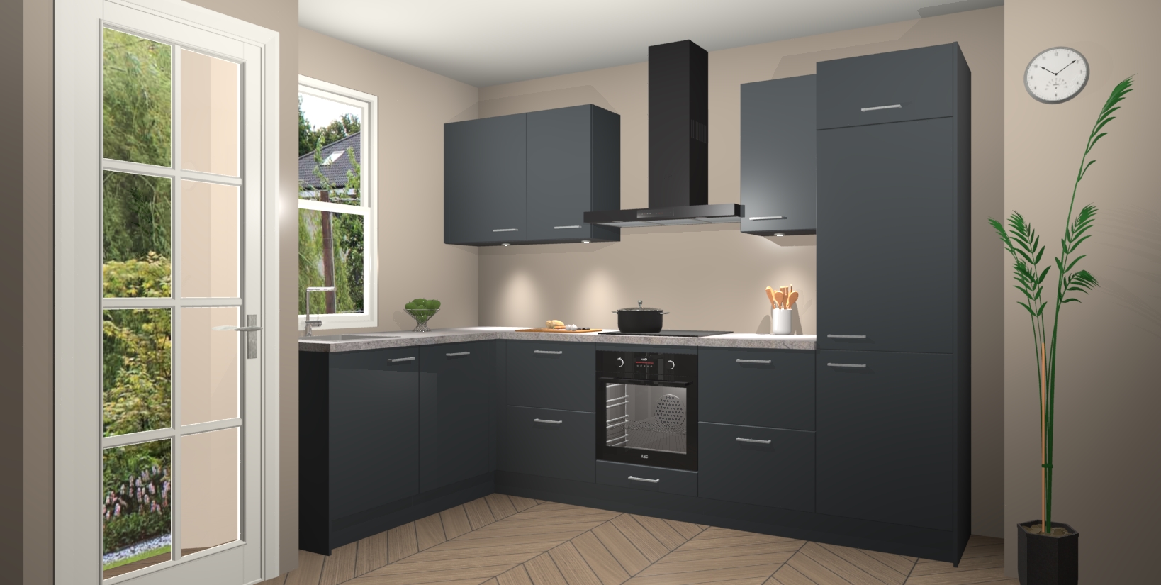 Bent u op zoek naar een strakke, moderne hoekkeuken die uw huis oppept en een moderne uitstraling geeft? Kijk dan niet verder dan de onyxgrijze keuken Beijing. Deze verbluffende hoekkeuken tilt hedendaags design naar een hoger niveau. Qua stijl is deze chique hoekkeuken voorzien van onyxgrijze accenten, om een strakke maar opvallende look te creëren. De binnenkant van de kasten is afgewerkt in dezelfde prachtige onyxgrijze kleur voor extra esthetische aantrekkingskracht.