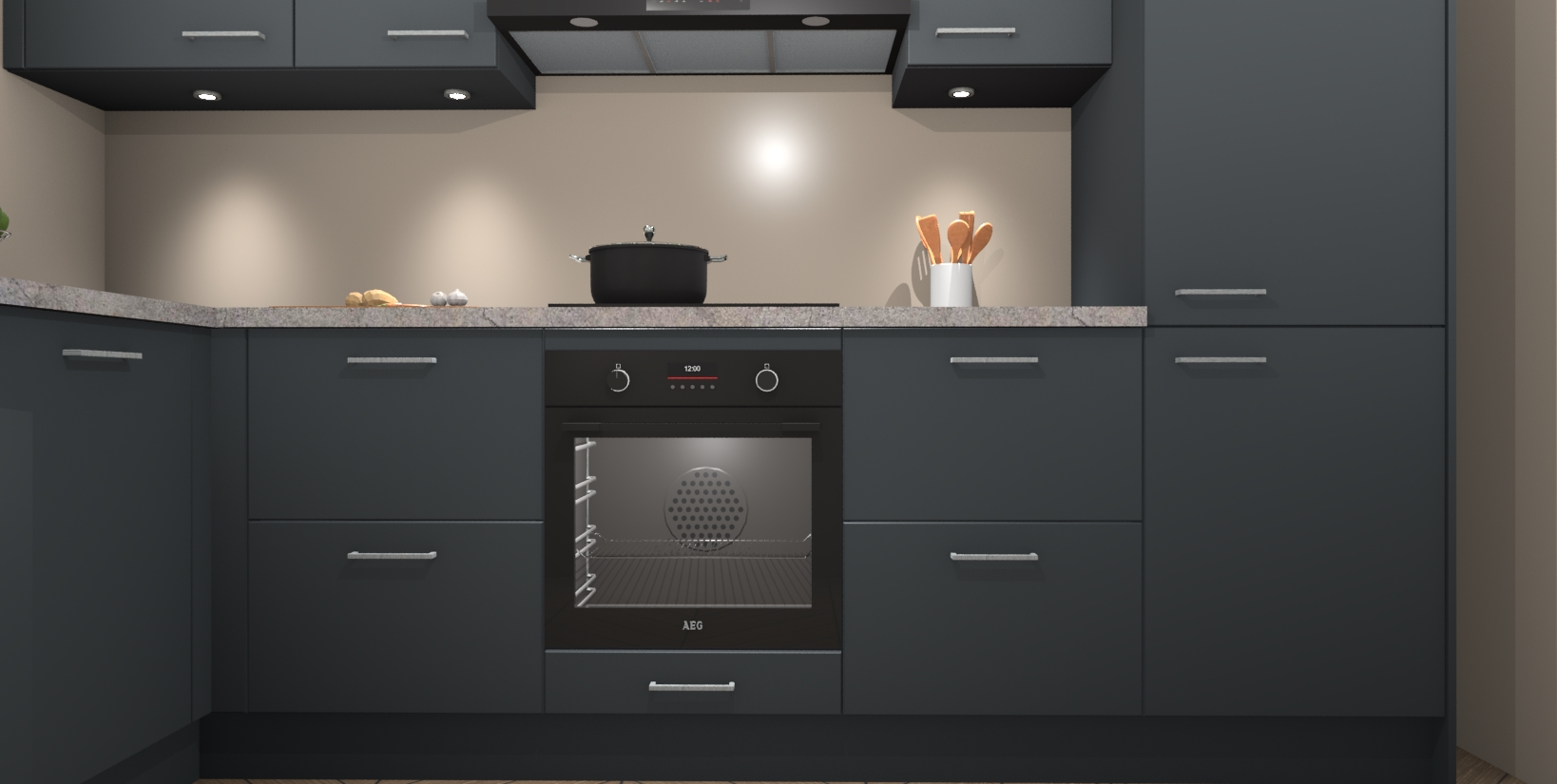 Inclusief plinten, stelpoten en werkblad
