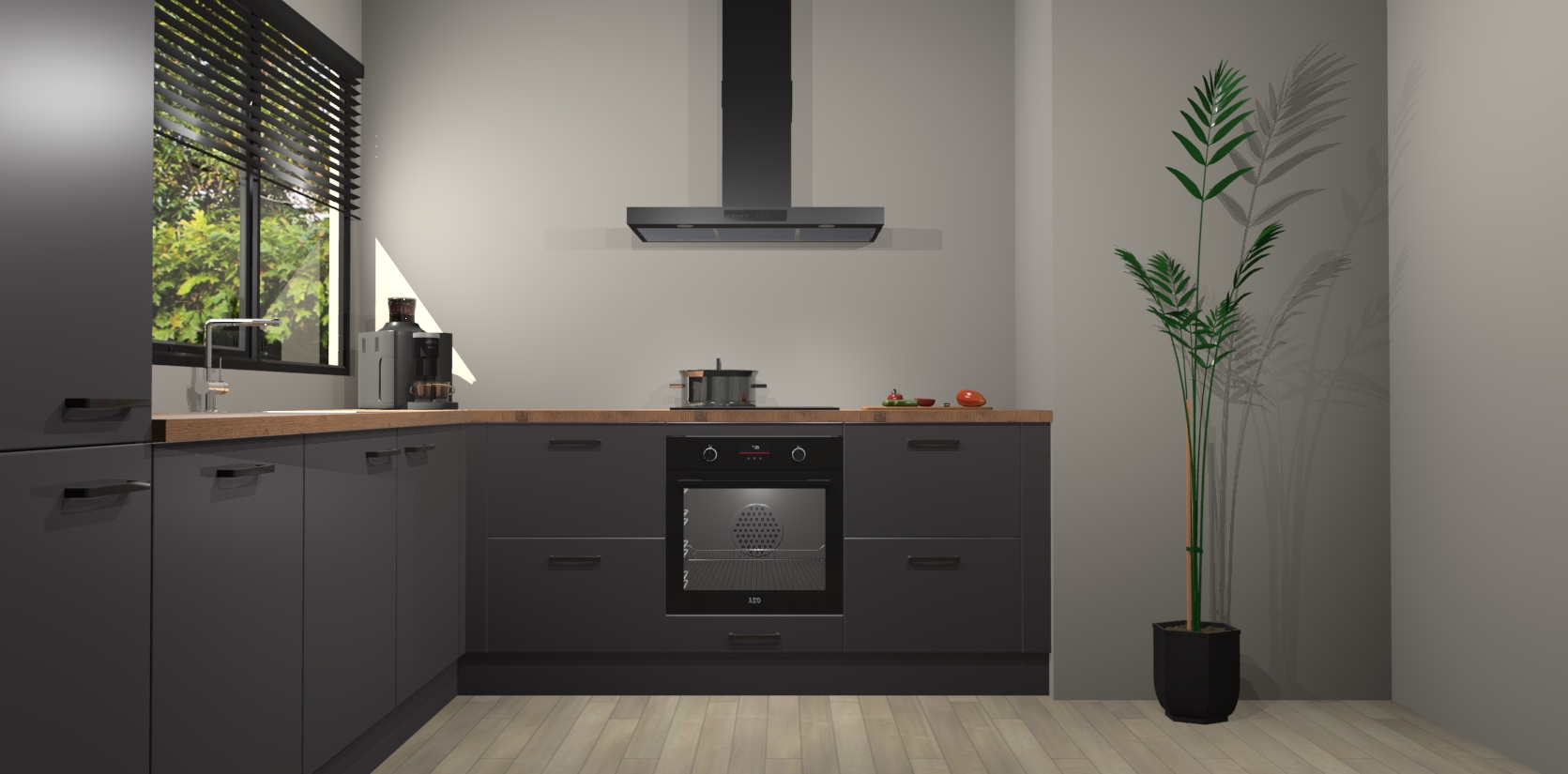 Met een modern, tijdloos design en ruime opslagruimte, zult u zich in no-time thuis voelen in uw nieuwe keuken. Uw leven wordt eenvoudiger met de soft-close deuren die voor het ultieme stille comfort zorgen - geen geluid dat u stoort terwijl u kookt. Ook is de keuken voorzien van 5 ingebouwde apparaten: een oven, inductie kookplaat, afzuigkap, vaatwasser en koelkast. Deze kunnen gemakkelijk na bestelling worden bijgewerkt naar AEG - waardoor uw luxe ervaring compleet is.