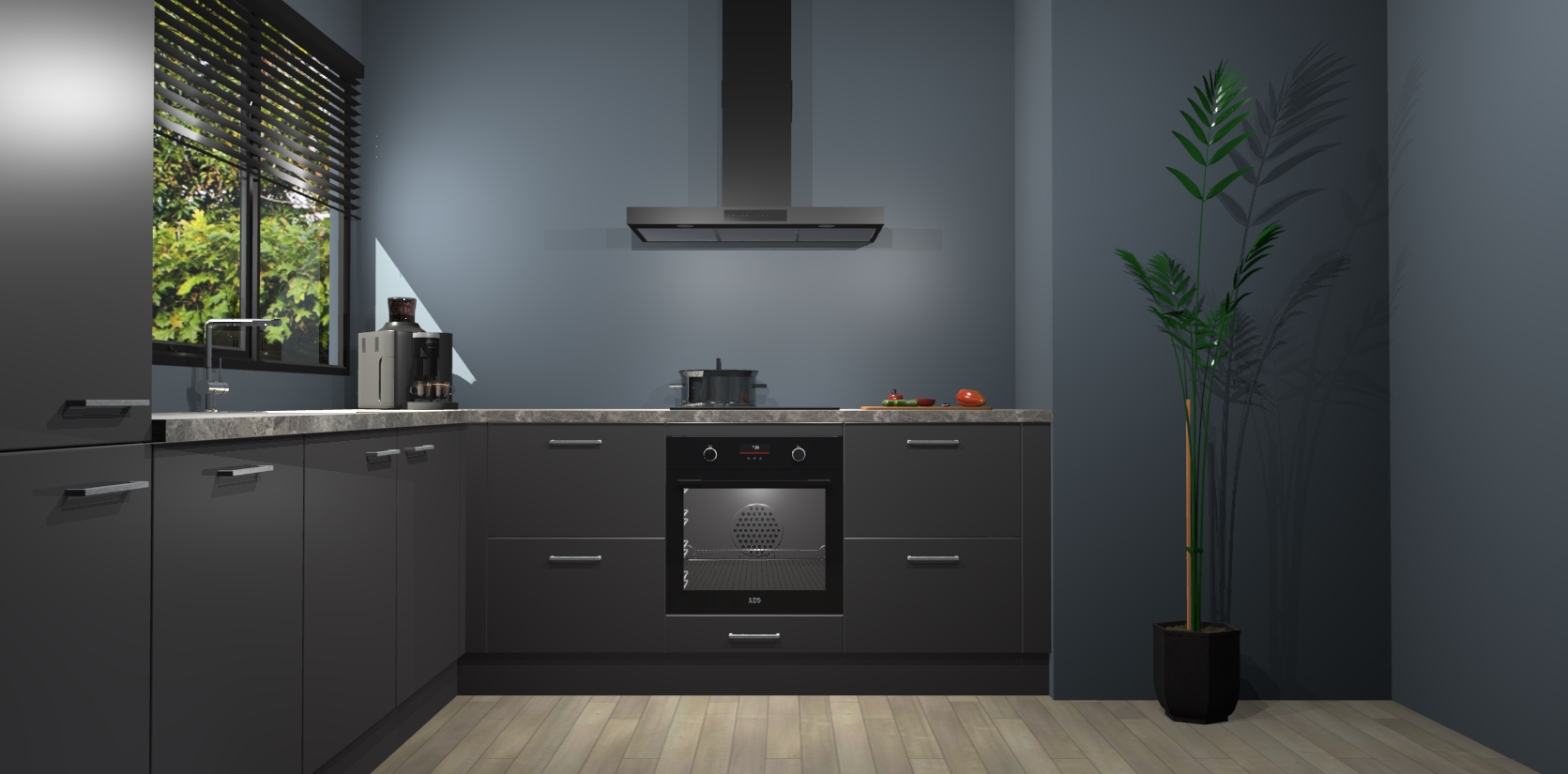 Met een modern, tijdloos design en ruime opslagruimte, zult u zich in no-time thuis voelen in uw nieuwe keuken. Uw leven wordt eenvoudiger met de soft-close deuren die voor het ultieme stille comfort zorgen - geen geluid dat u stoort terwijl u kookt. Ook is de keuken voorzien van 5 ingebouwde apparaten: een oven, inductie kookplaat, afzuigkap, vaatwasser en koelkast. Deze kunnen gemakkelijk na bestelling worden bijgewerkt naar AEG - waardoor uw luxe ervaring compleet is.