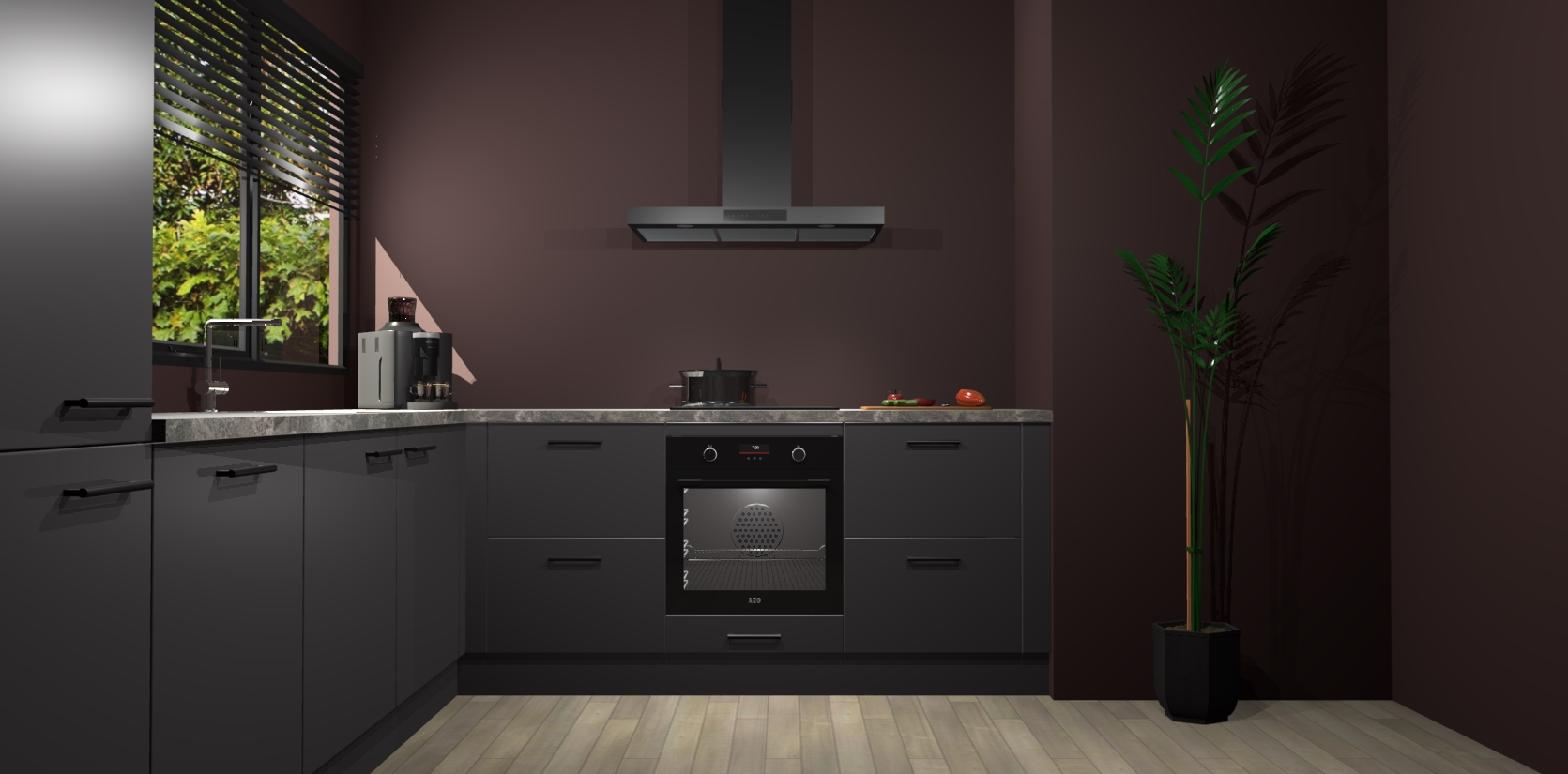 Met een modern, tijdloos design en ruime opslagruimte, zult u zich in no-time thuis voelen in uw nieuwe keuken. Uw leven wordt eenvoudiger met de soft-close deuren die voor het ultieme stille comfort zorgen - geen geluid dat u stoort terwijl u kookt. Ook is de keuken voorzien van 5 ingebouwde apparaten: een oven, inductie kookplaat, afzuigkap, vaatwasser en koelkast. Deze kunnen gemakkelijk na bestelling worden bijgewerkt naar AEG - waardoor uw luxe ervaring compleet is.