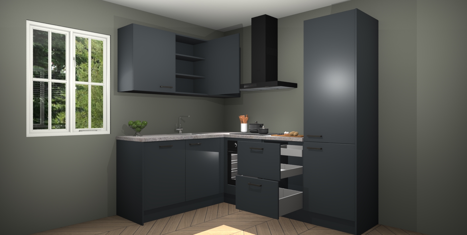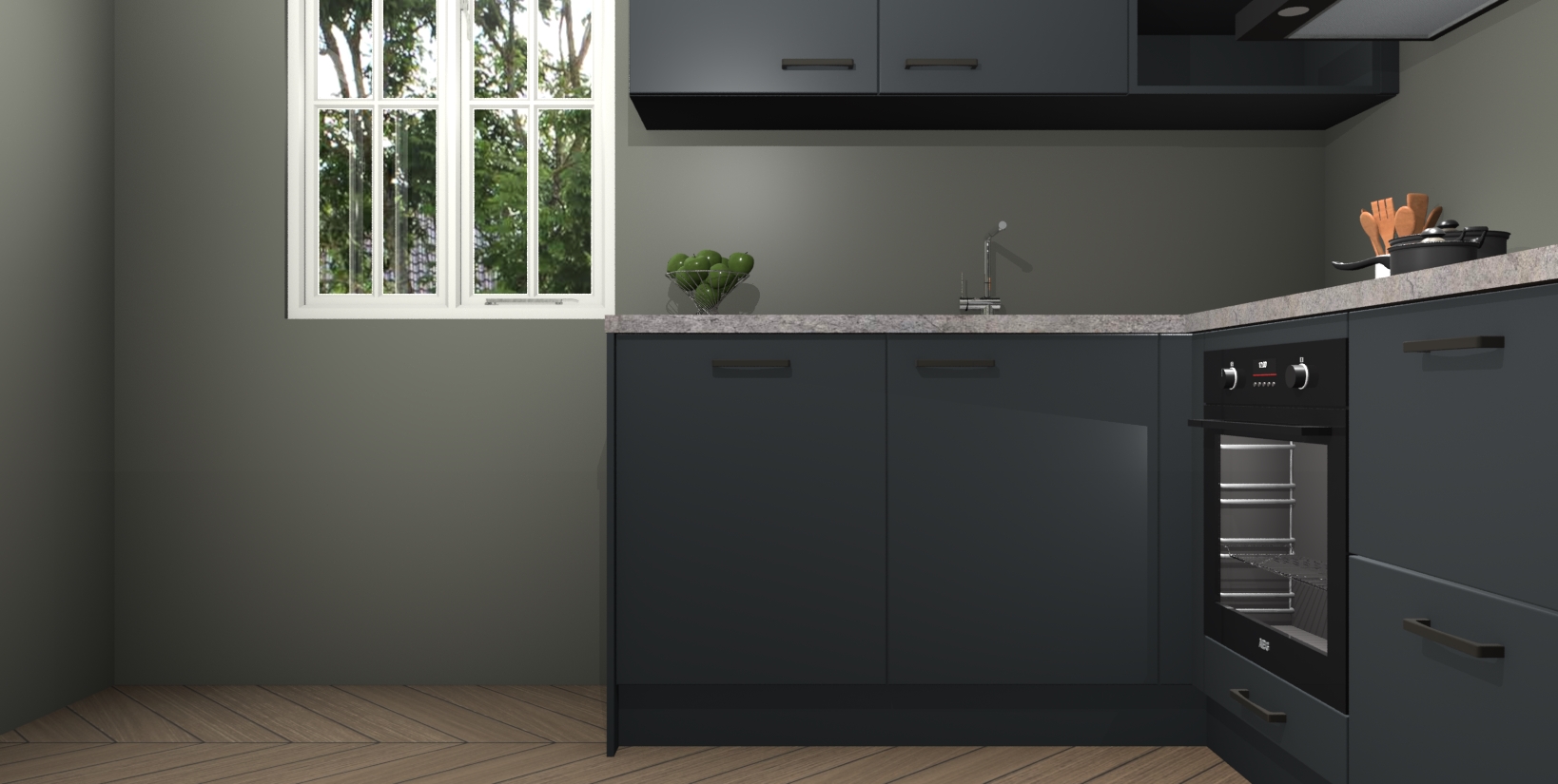 Maak kennis met de Onyxgrijze keuken Boekarest, een moderne hoekkeuken waar al uw vrienden en familie jaloers op zullen zijn! Het verbluffende mooie ontwerp past in elk interieur en is een ideale keuze voor wie op zoek is naar een klassieke, maar verfijnde look.