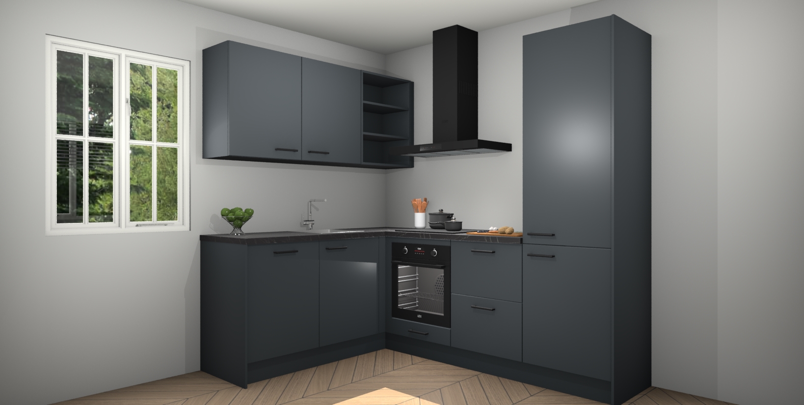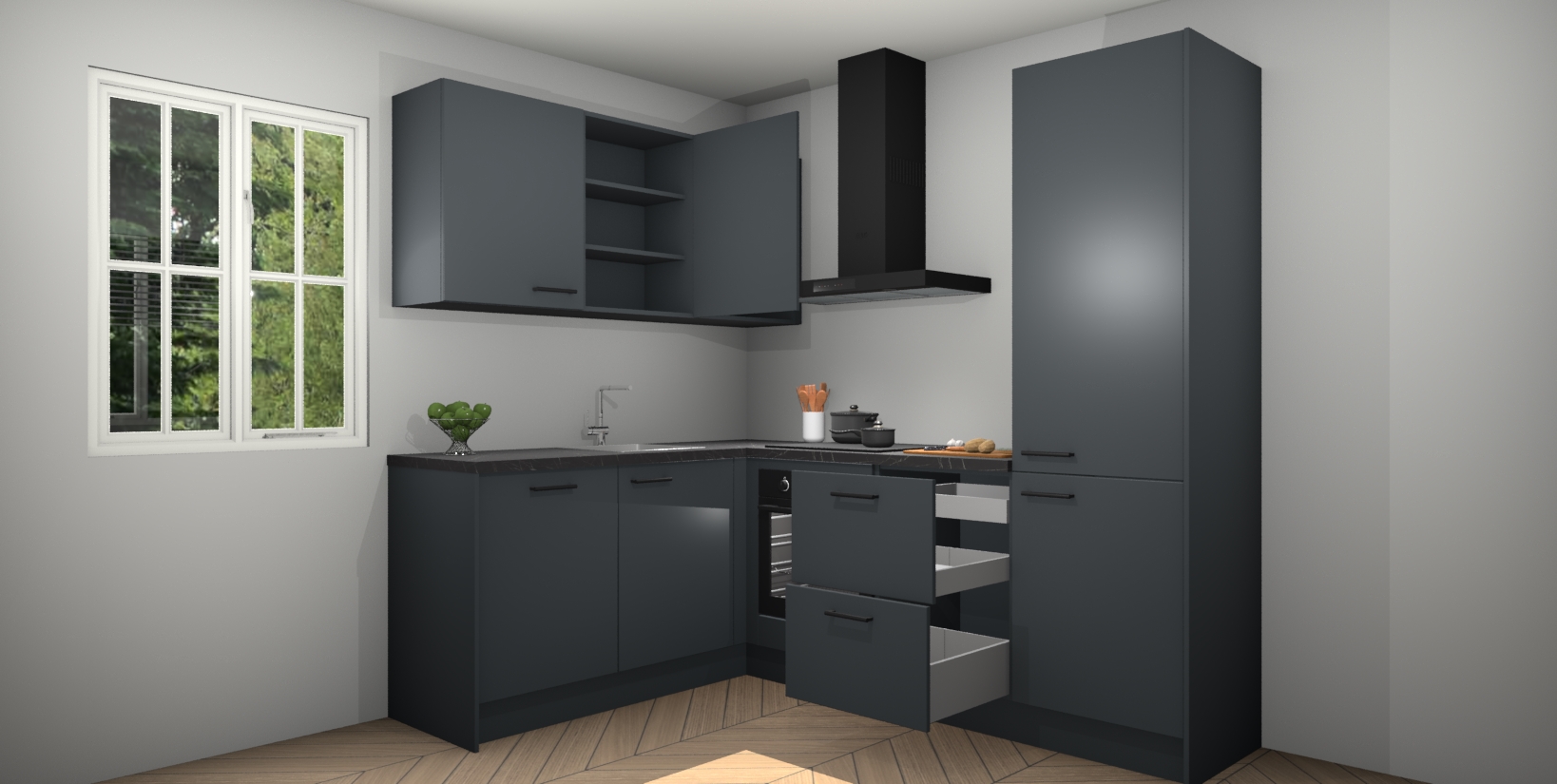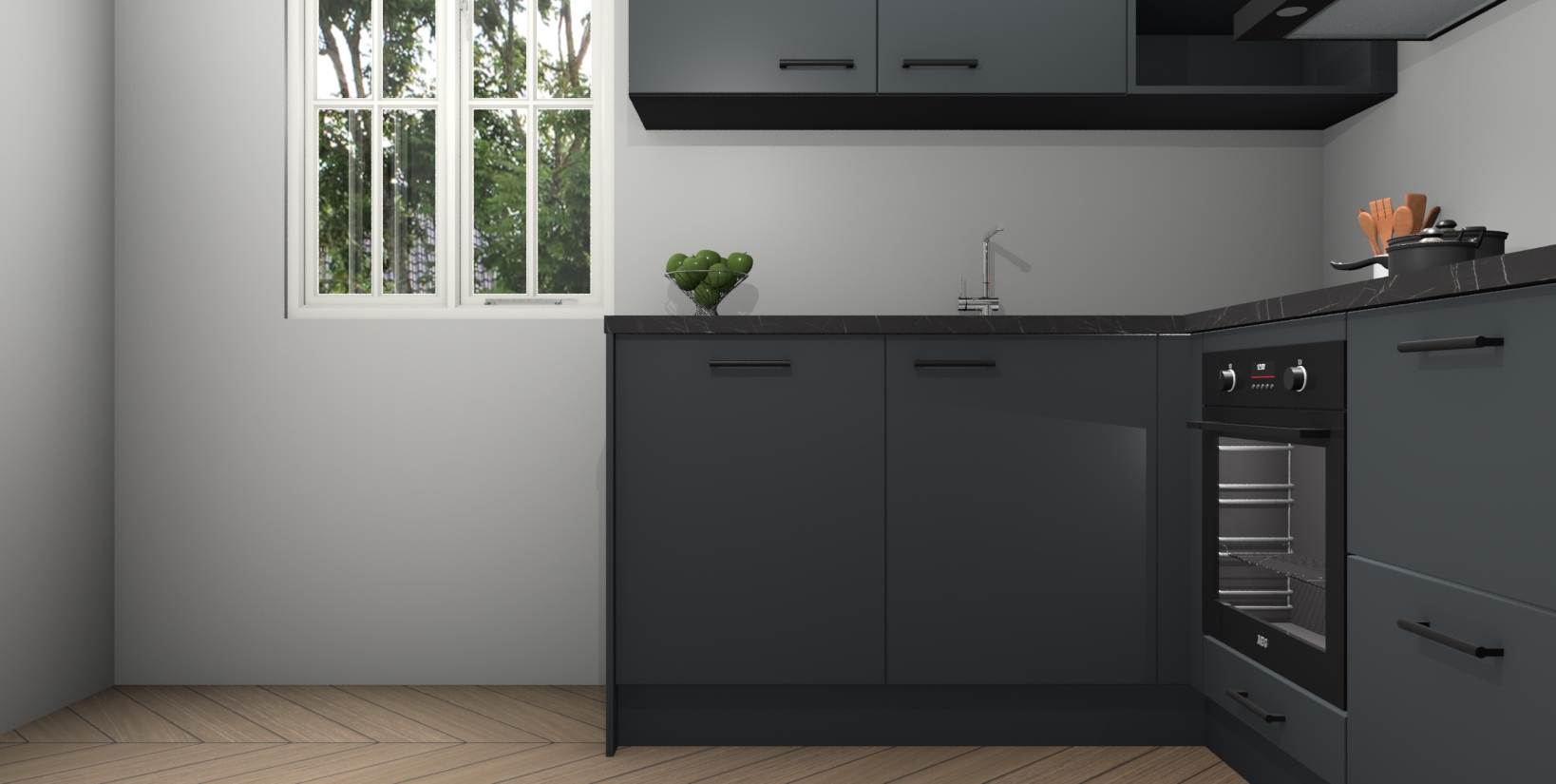Maak kennis met de Onyxgrijze keuken Boekarest, een moderne hoekkeuken waar al uw vrienden en familie jaloers op zullen zijn! Het verbluffende mooie ontwerp past in elk interieur en is een ideale keuze voor wie op zoek is naar een klassieke, maar verfijnde look.