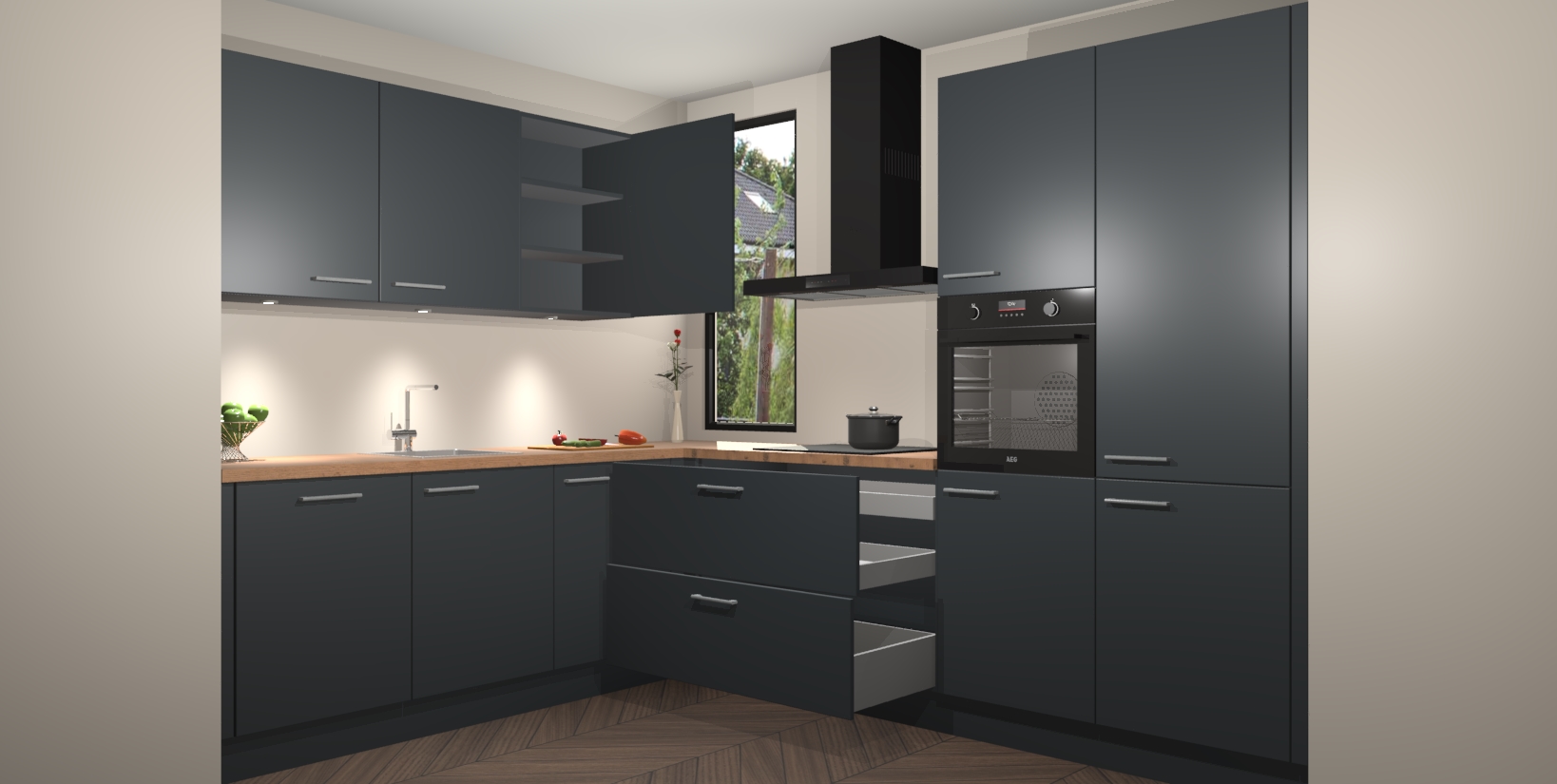 In deze box zijn alle kleuren verzameld van de deuren en werkbladen. Vraag de gratis kleurenbox aan en kijk thuis rustig verder!