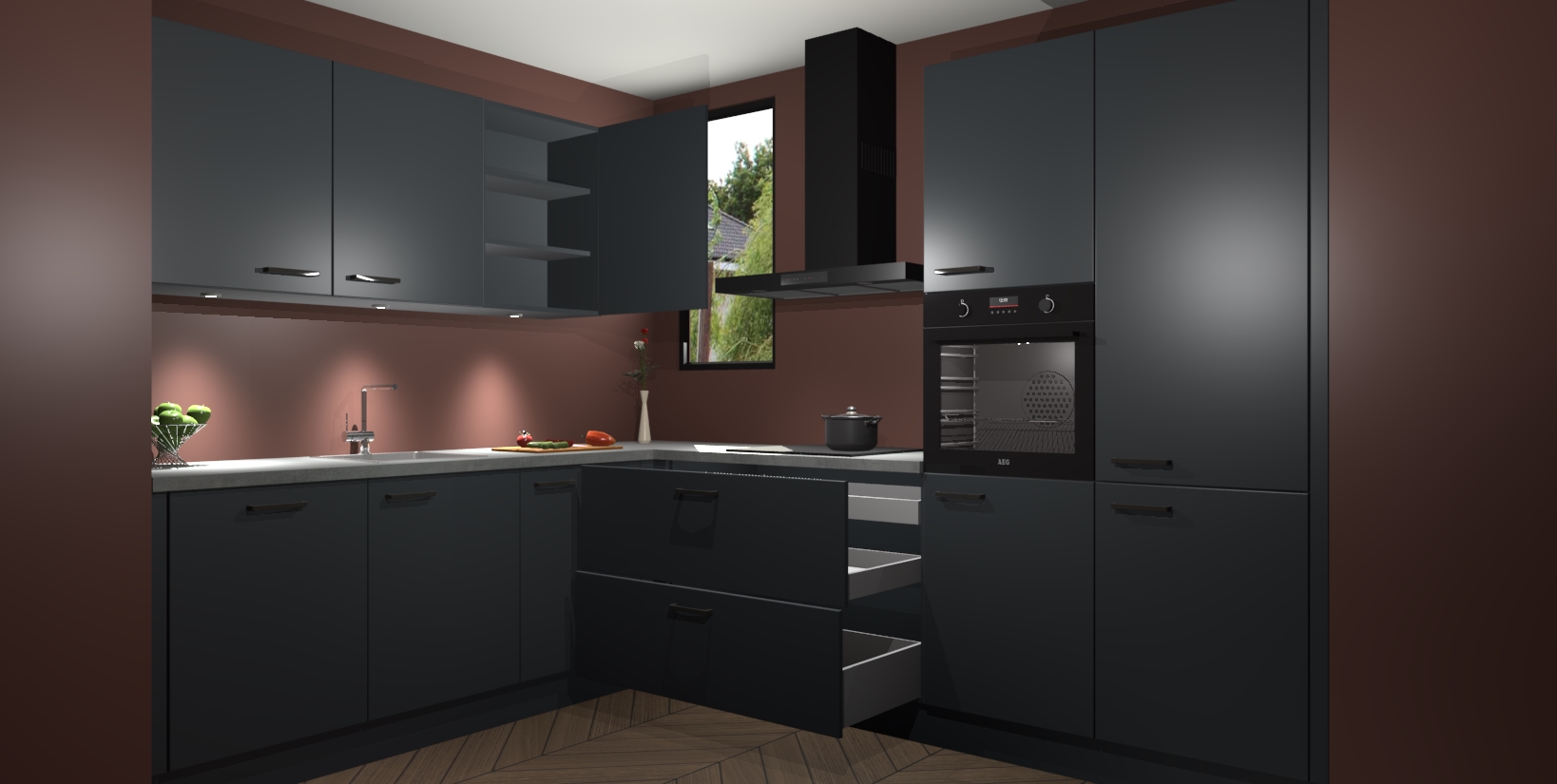 In deze box zijn alle kleuren verzameld van de deuren en werkbladen. Vraag de gratis kleurenbox aan en kijk thuis rustig verder!