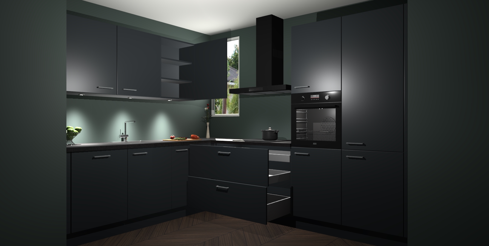 In deze box zijn alle kleuren verzameld van de deuren en werkbladen. Vraag de gratis kleurenbox aan en kijk thuis rustig verder!