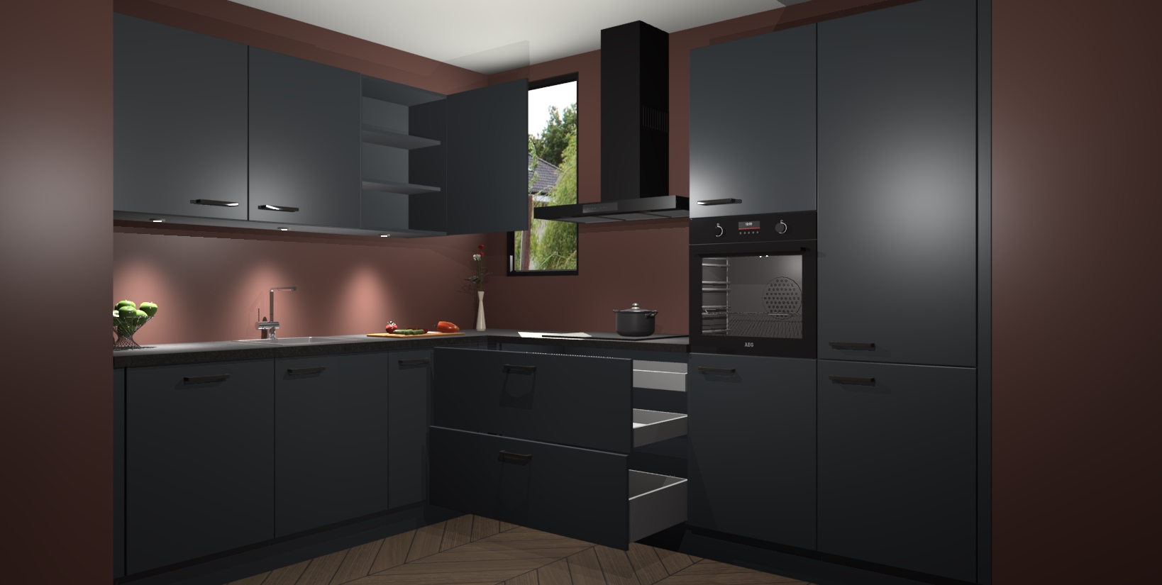 In deze box zijn alle kleuren verzameld van de deuren en werkbladen. Vraag de gratis kleurenbox aan en kijk thuis rustig verder!