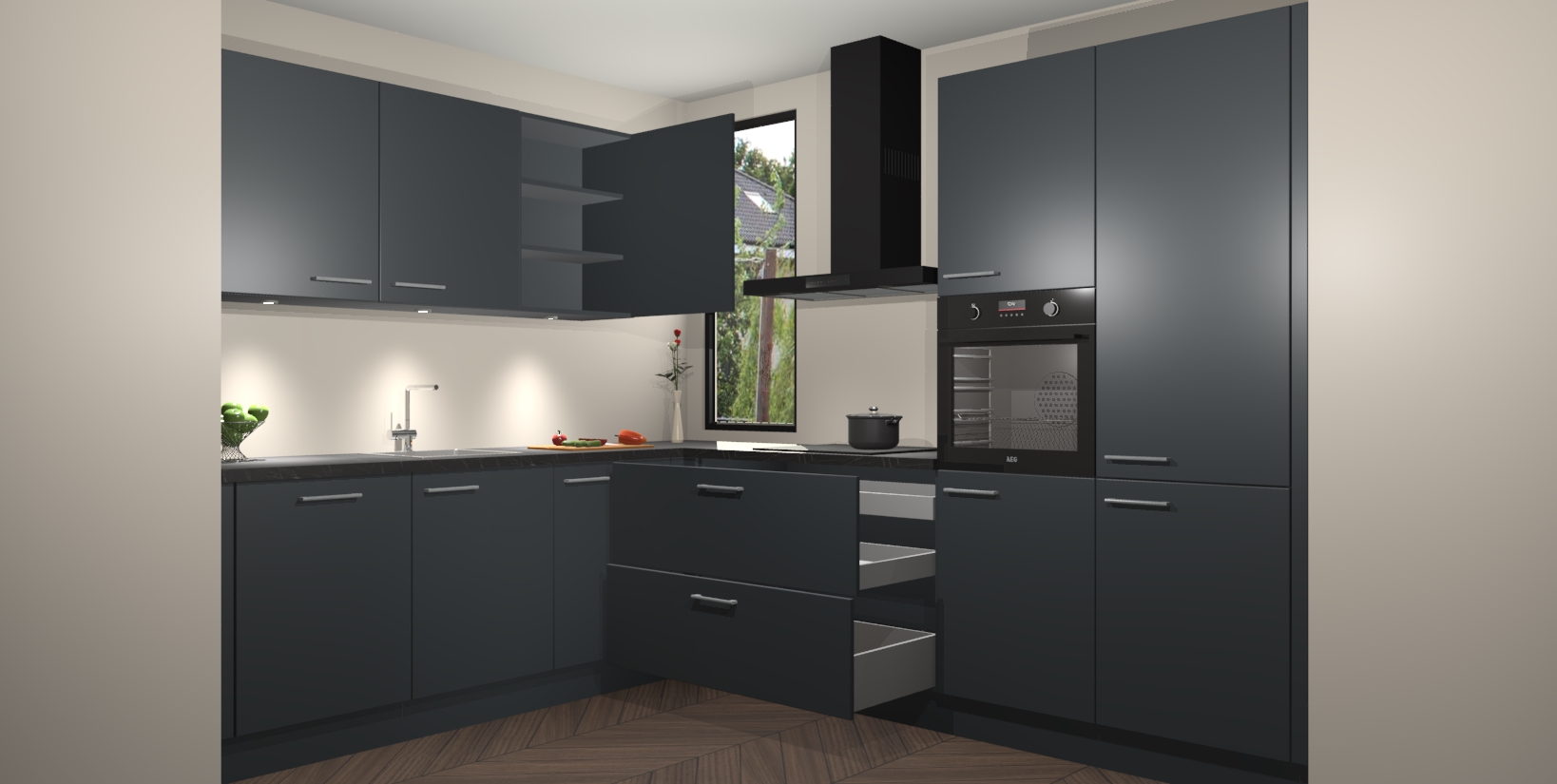 In deze box zijn alle kleuren verzameld van de deuren en werkbladen. Vraag de gratis kleurenbox aan en kijk thuis rustig verder!