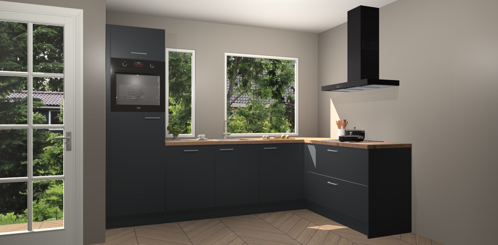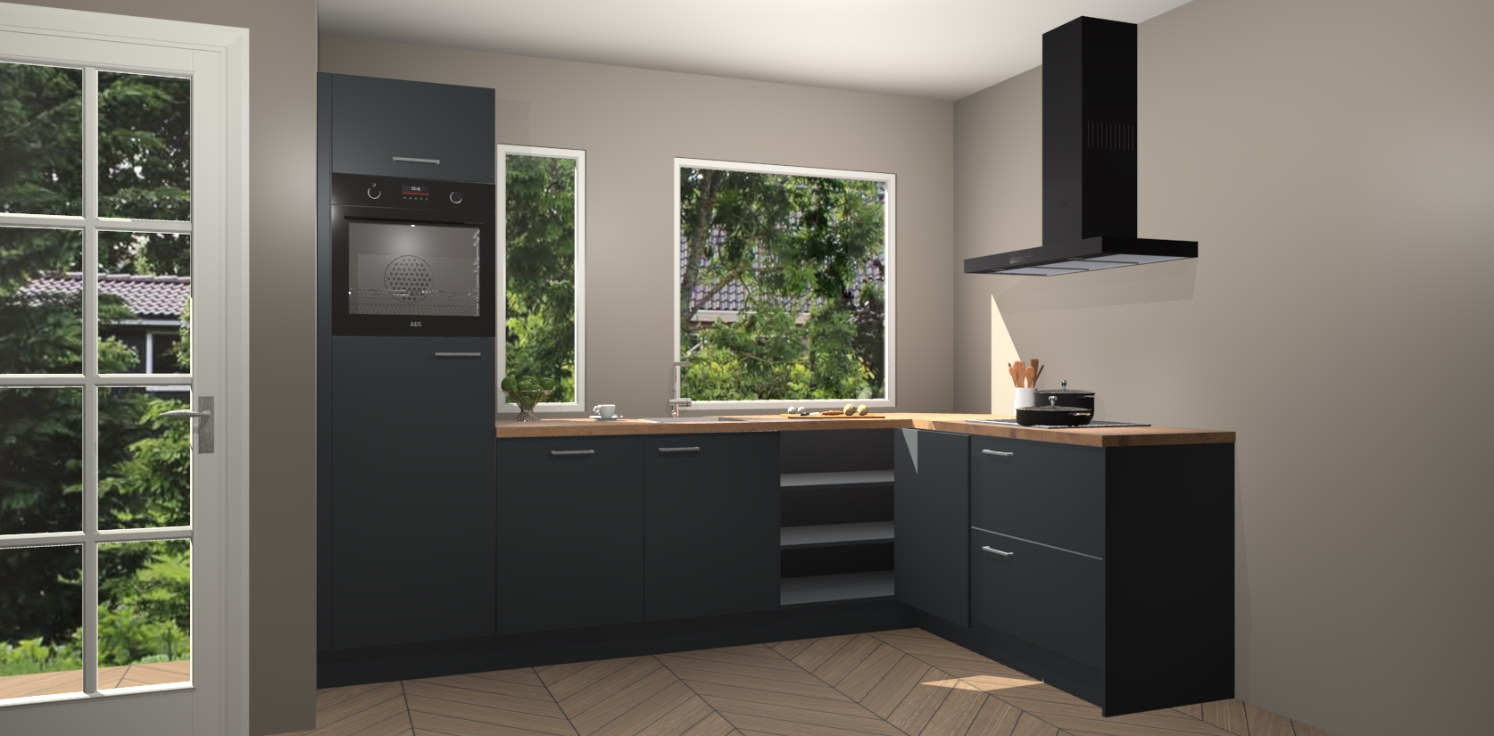 Deze complete keuken wordt geleverd met 5 inbouwapparaten: een oven, inductiekookplaat, afzuigkap, vaatwasser en koelkast. De toestellen kunnen na bestelling ook gemakkelijk worden opgewaardeerd naar AEG. Bovendien is elke deur in deze keuken voorzien van handige softclose technologie voor eenvoudig gebruik! Als een leuke toevoeging zit in deze keuken ook een carrousel, zo hoef je niet meer de hoek in duiken om iets te pakken.