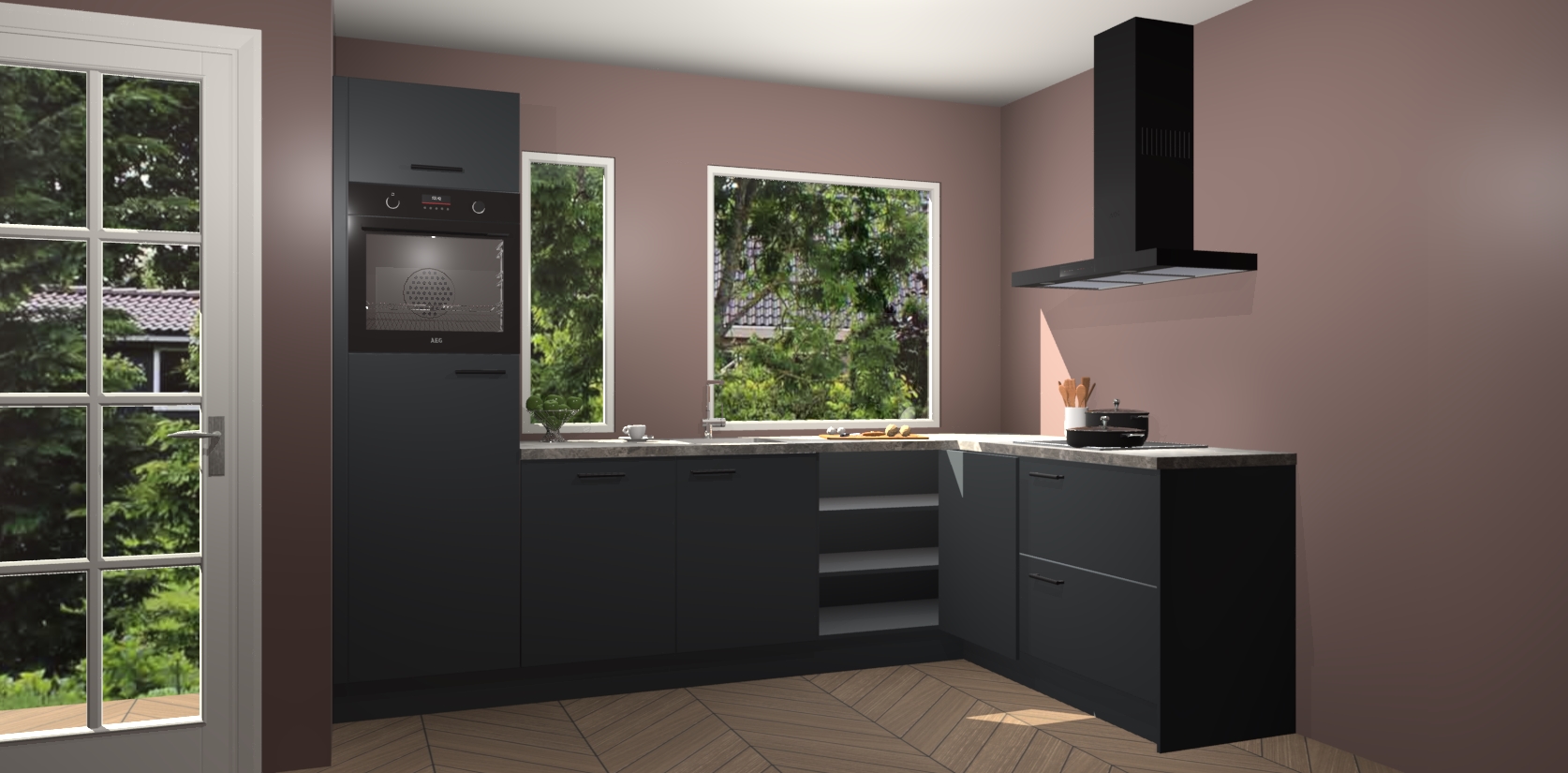 Deze complete keuken wordt geleverd met 5 inbouwapparaten: een oven, inductiekookplaat, afzuigkap, vaatwasser en koelkast. De toestellen kunnen na bestelling ook gemakkelijk worden opgewaardeerd naar AEG. Bovendien is elke deur in deze keuken voorzien van handige softclose technologie voor eenvoudig gebruik! Als een leuke toevoeging zit in deze keuken ook een carrousel, zo hoef je niet meer de hoek in duiken om iets te pakken.