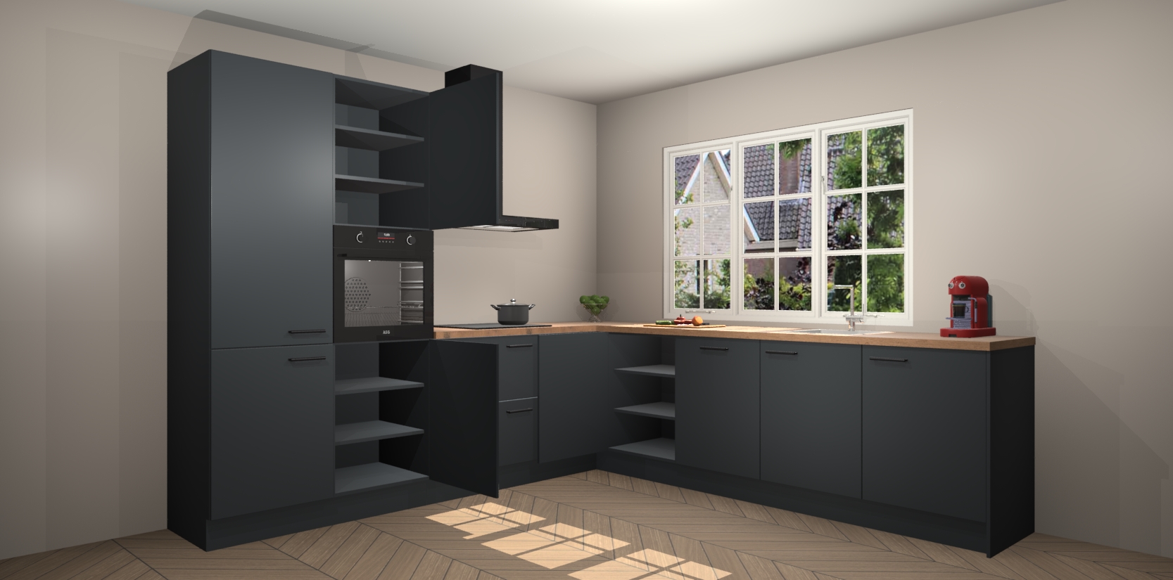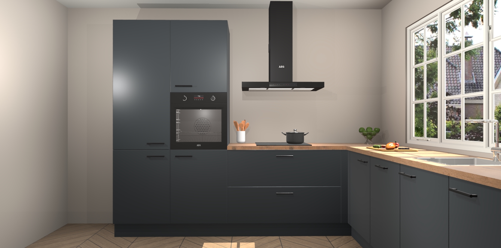 De keuken heeft veel opbergruimte, waardoor u alle ingrediënten gemakkelijk bereikbaar hebt staan. En daarnaast bevat deze volledig uitgeruste keuken ook 5 ingebouwde apparaten: een oven, inductiekookplaat, afzuigkap, vaatwasser en koelkast. Deze zijn heel eenvoudig na bestellen te upgraden naar AEG als u dit wilt. Bovendien zijn de softclose-kastdeuren ideaal; geef ze gewoon even een tikje en ze sluiten automatisch met geruisloze precisie.