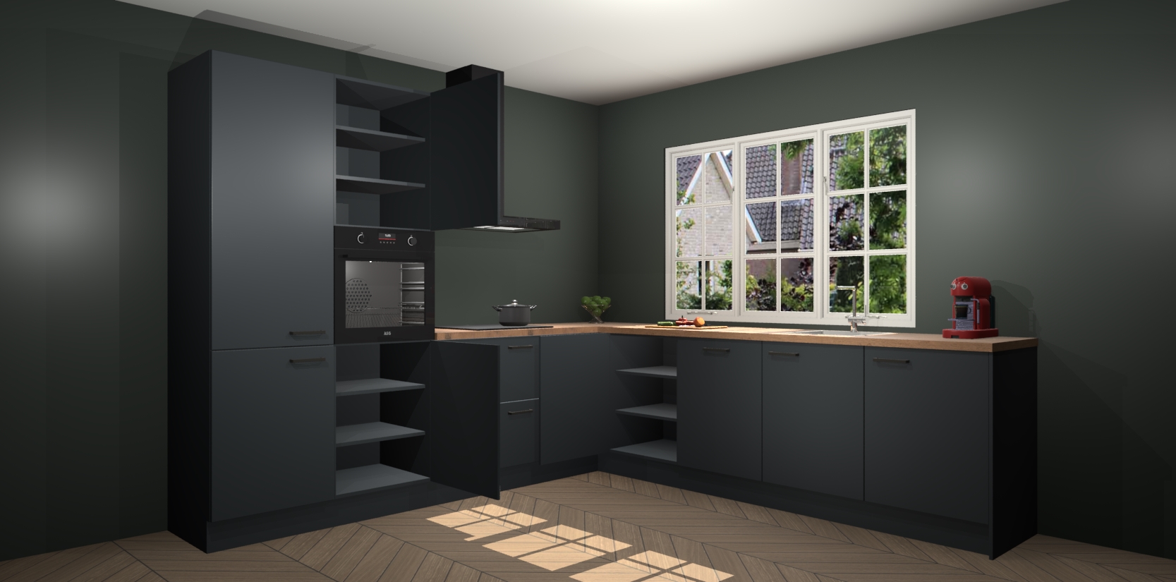 De keuken heeft veel opbergruimte, waardoor u alle ingrediënten gemakkelijk bereikbaar hebt staan. En daarnaast bevat deze volledig uitgeruste keuken ook 5 ingebouwde apparaten: een oven, inductiekookplaat, afzuigkap, vaatwasser en koelkast. Deze zijn heel eenvoudig na bestellen te upgraden naar AEG als u dit wilt. Bovendien zijn de softclose-kastdeuren ideaal; geef ze gewoon even een tikje en ze sluiten automatisch met geruisloze precisie.
