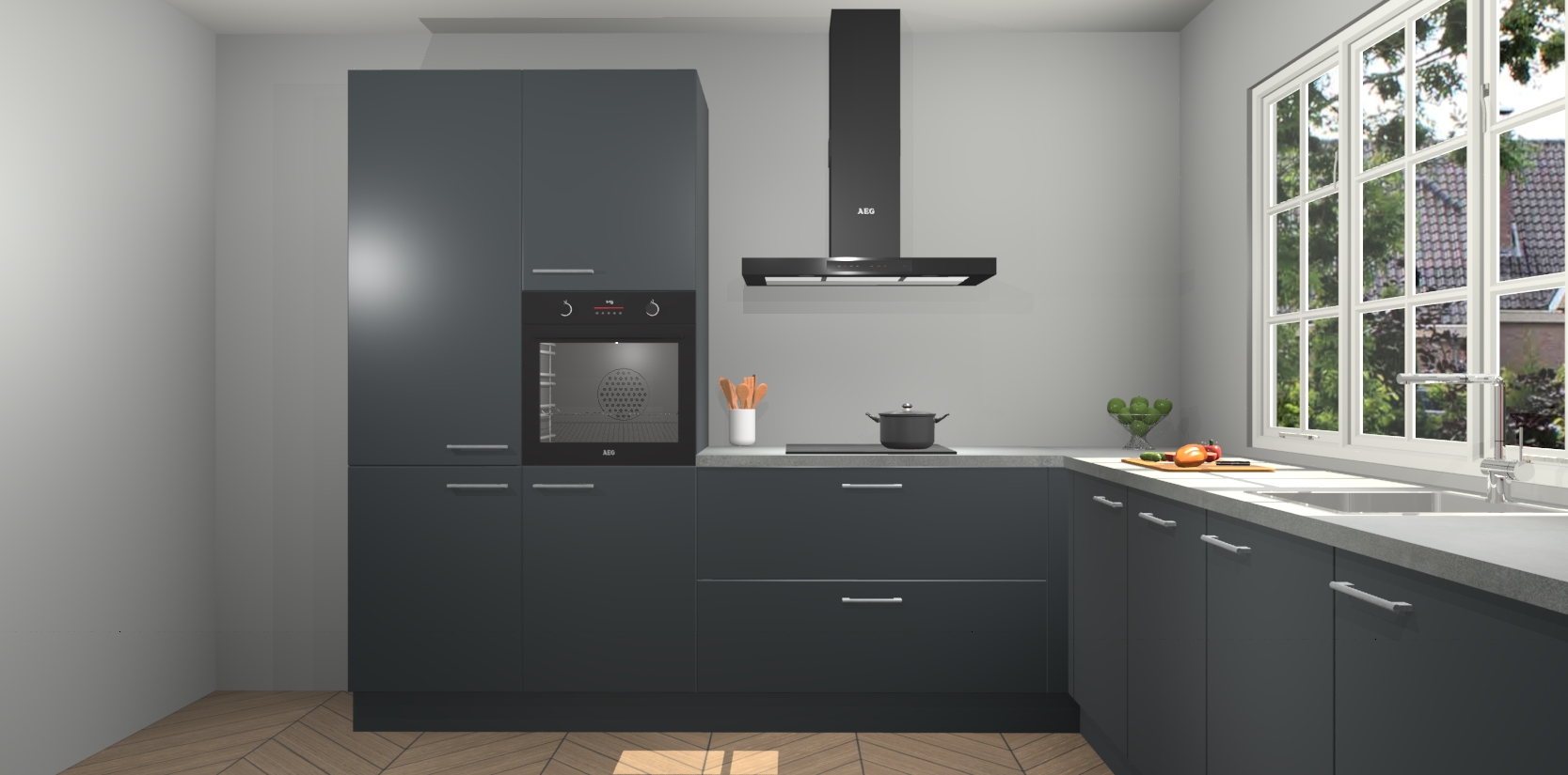 De keuken heeft veel opbergruimte, waardoor u alle ingrediënten gemakkelijk bereikbaar hebt staan. En daarnaast bevat deze volledig uitgeruste keuken ook 5 ingebouwde apparaten: een oven, inductiekookplaat, afzuigkap, vaatwasser en koelkast. Deze zijn heel eenvoudig na bestellen te upgraden naar AEG als u dit wilt. Bovendien zijn de softclose-kastdeuren ideaal; geef ze gewoon even een tikje en ze sluiten automatisch met geruisloze precisie.