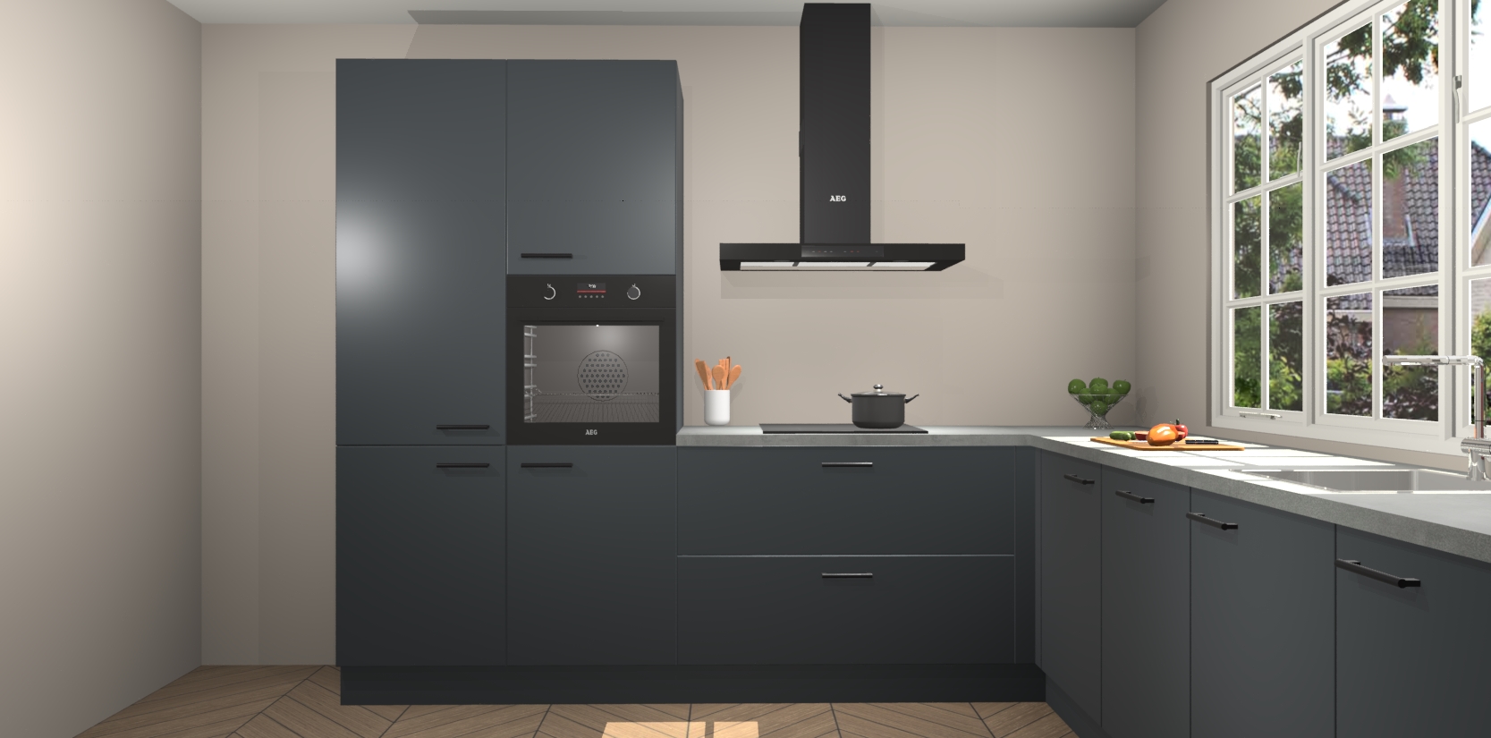 De keuken heeft veel opbergruimte, waardoor u alle ingrediënten gemakkelijk bereikbaar hebt staan. En daarnaast bevat deze volledig uitgeruste keuken ook 5 ingebouwde apparaten: een oven, inductiekookplaat, afzuigkap, vaatwasser en koelkast. Deze zijn heel eenvoudig na bestellen te upgraden naar AEG als u dit wilt. Bovendien zijn de softclose-kastdeuren ideaal; geef ze gewoon even een tikje en ze sluiten automatisch met geruisloze precisie.