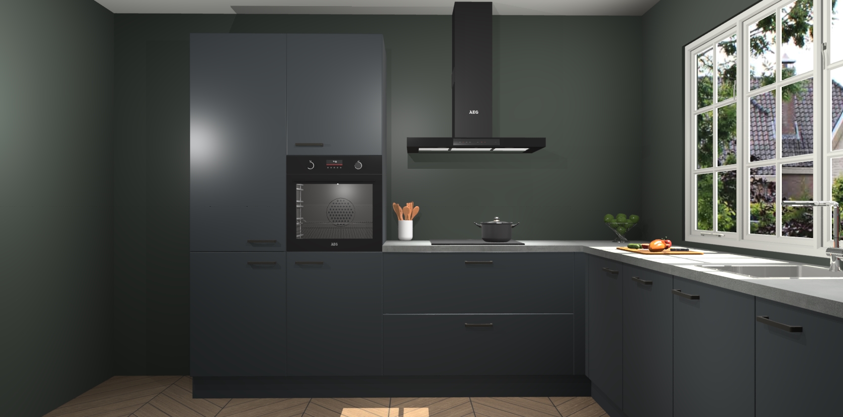 De keuken heeft veel opbergruimte, waardoor u alle ingrediënten gemakkelijk bereikbaar hebt staan. En daarnaast bevat deze volledig uitgeruste keuken ook 5 ingebouwde apparaten: een oven, inductiekookplaat, afzuigkap, vaatwasser en koelkast. Deze zijn heel eenvoudig na bestellen te upgraden naar AEG als u dit wilt. Bovendien zijn de softclose-kastdeuren ideaal; geef ze gewoon even een tikje en ze sluiten automatisch met geruisloze precisie.