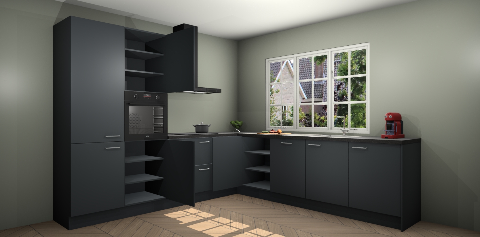 Welkom in de nieuwe wereld van een moderne keuken: de Onyxgrijze keuken Casablanca! Met dit innovatieve keukendesign haalt u de natuur naar binnen. Neem plaats aan uw hout-look keuken en voel u verbonden met de prachtige Onyxgrijze kleur. Zeer gebruiksvriendelijk, ervaring door prettige materialen en kleur die perfect aansluiten bij uw sfeerkeuze in huis.