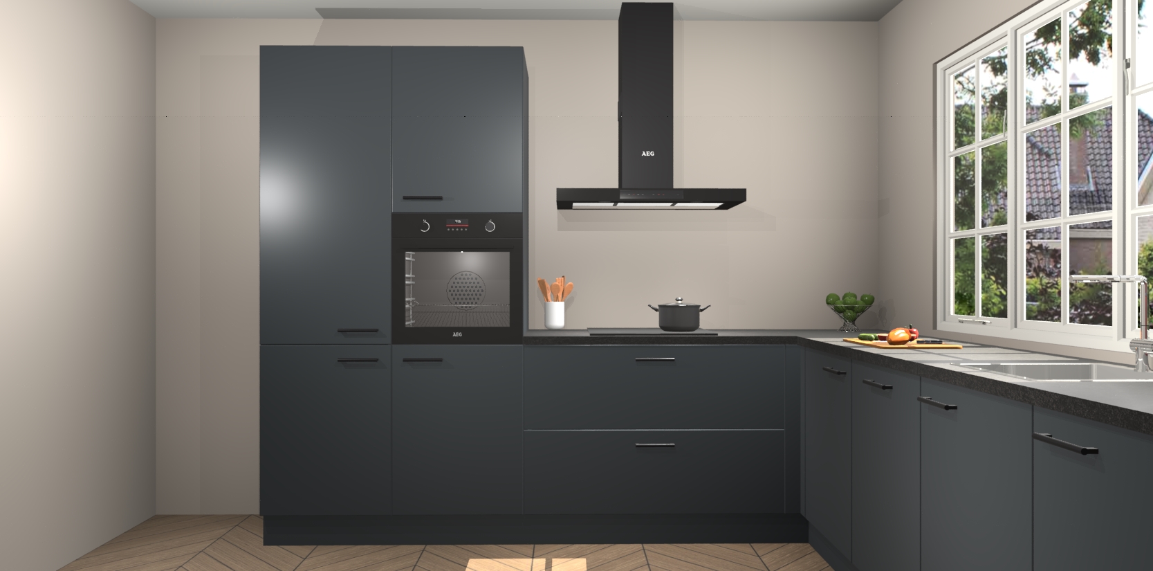 De keuken heeft veel opbergruimte, waardoor u alle ingrediënten gemakkelijk bereikbaar hebt staan. En daarnaast bevat deze volledig uitgeruste keuken ook 5 ingebouwde apparaten: een oven, inductiekookplaat, afzuigkap, vaatwasser en koelkast. Deze zijn heel eenvoudig na bestellen te upgraden naar AEG als u dit wilt. Bovendien zijn de softclose-kastdeuren ideaal; geef ze gewoon even een tikje en ze sluiten automatisch met geruisloze precisie.