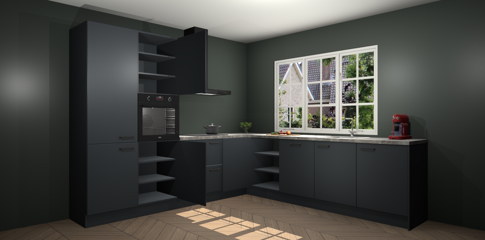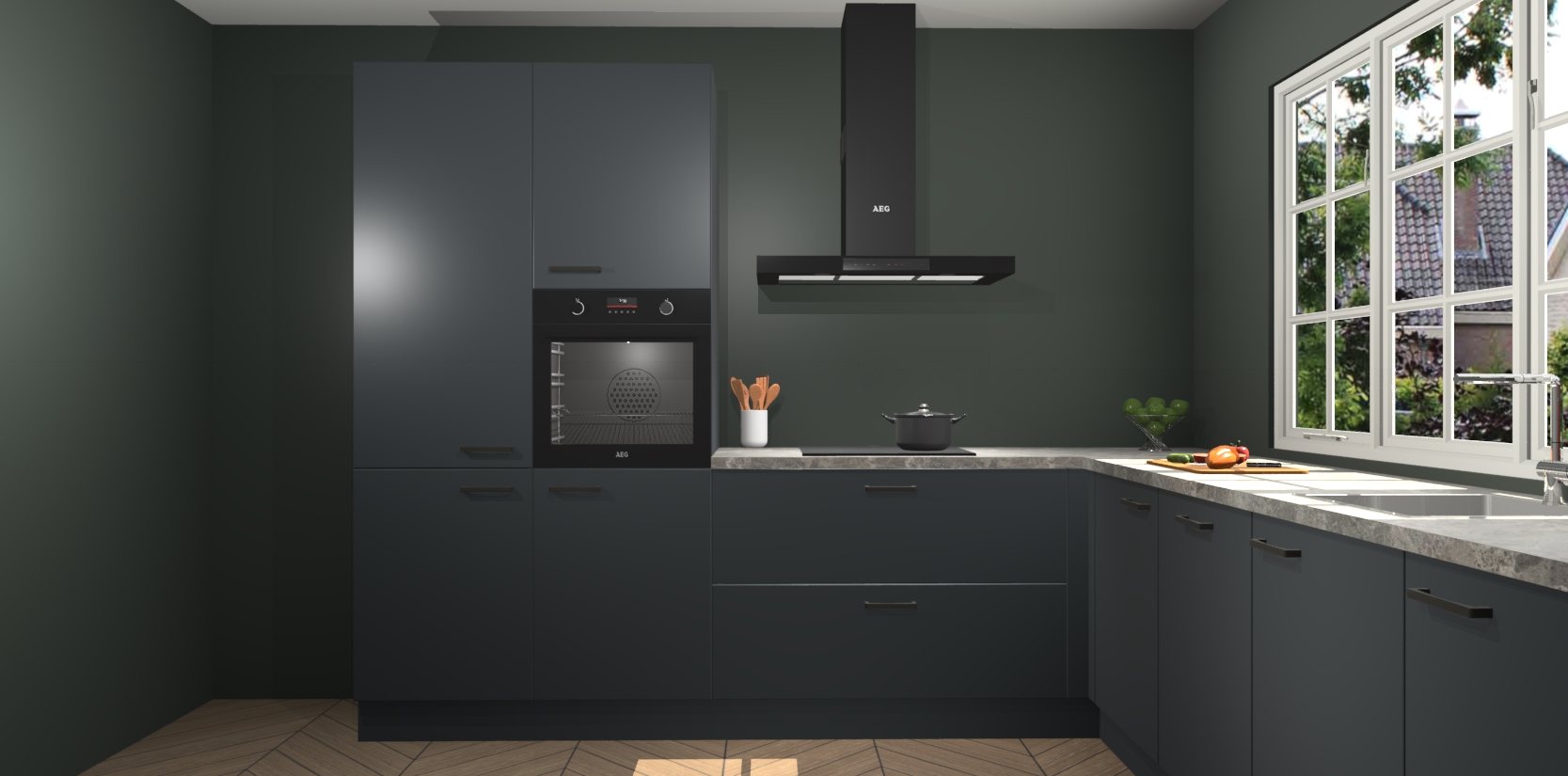De keuken heeft veel opbergruimte, waardoor u alle ingrediënten gemakkelijk bereikbaar hebt staan. En daarnaast bevat deze volledig uitgeruste keuken ook 5 ingebouwde apparaten: een oven, inductiekookplaat, afzuigkap, vaatwasser en koelkast. Deze zijn heel eenvoudig na bestellen te upgraden naar AEG als u dit wilt. Bovendien zijn de softclose-kastdeuren ideaal; geef ze gewoon even een tikje en ze sluiten automatisch met geruisloze precisie.
