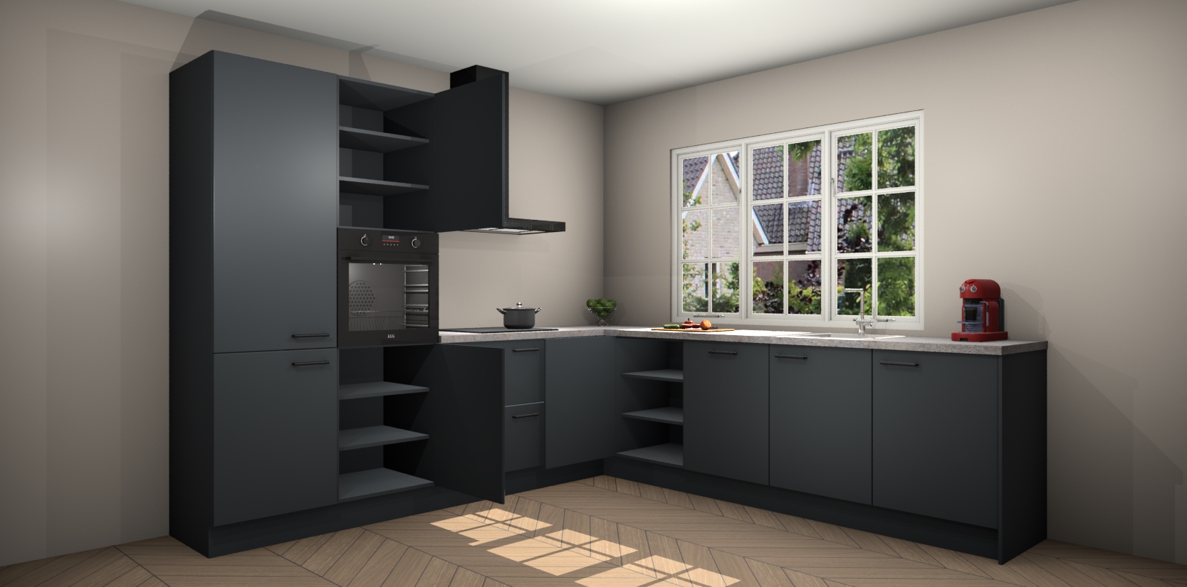 De keuken heeft veel opbergruimte, waardoor u alle ingrediënten gemakkelijk bereikbaar hebt staan. En daarnaast bevat deze volledig uitgeruste keuken ook 5 ingebouwde apparaten: een oven, inductiekookplaat, afzuigkap, vaatwasser en koelkast. Deze zijn heel eenvoudig na bestellen te upgraden naar AEG als u dit wilt. Bovendien zijn de softclose-kastdeuren ideaal; geef ze gewoon even een tikje en ze sluiten automatisch met geruisloze precisie.