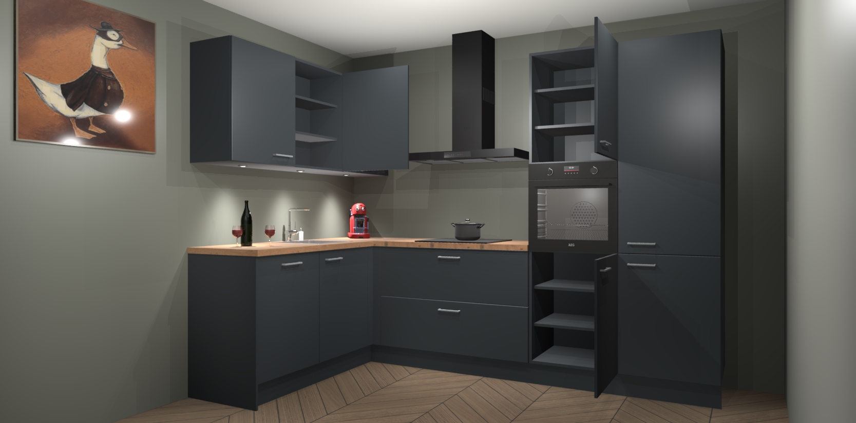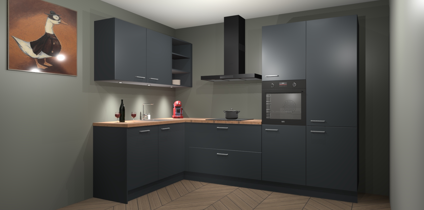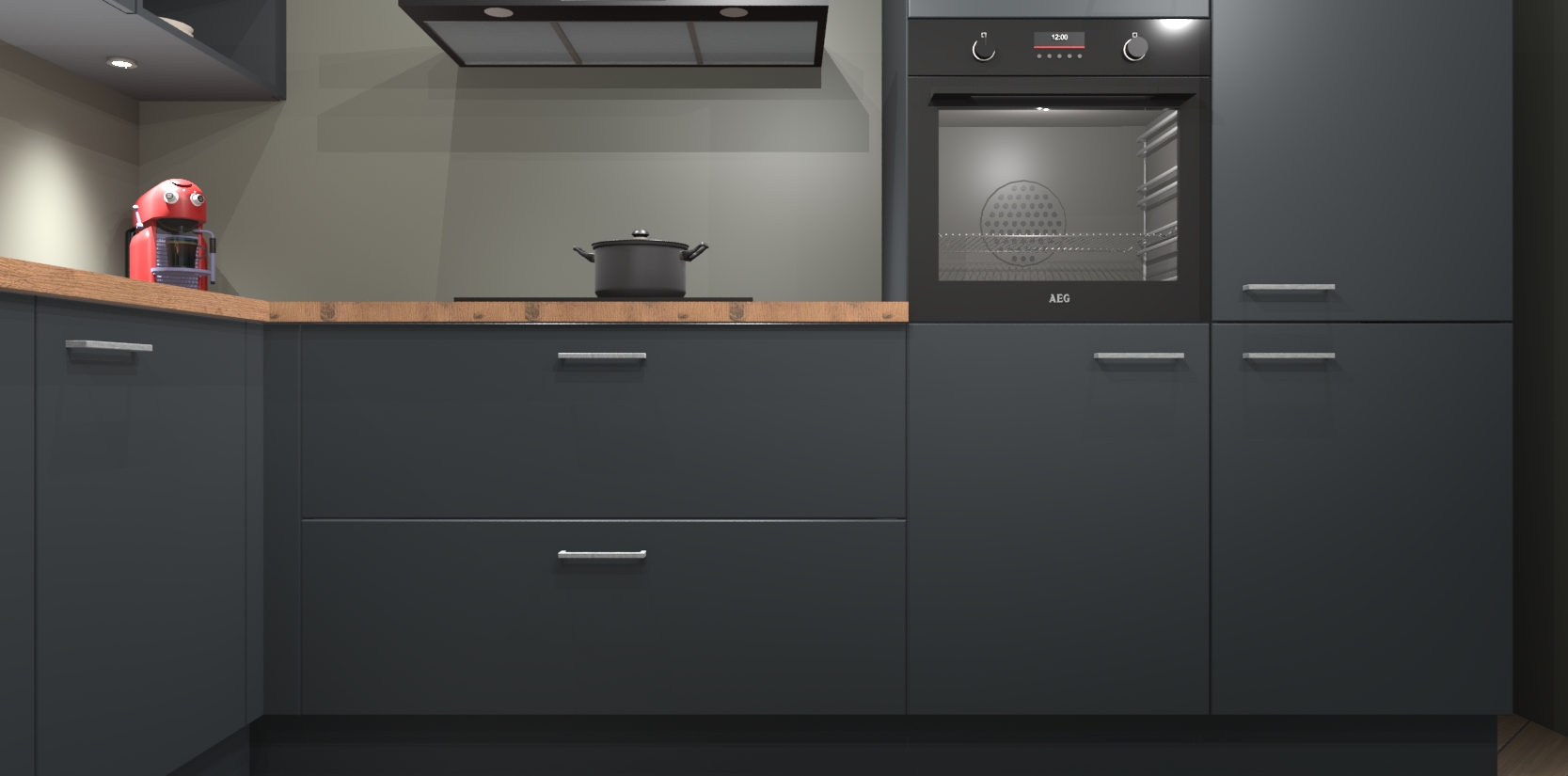 De Onyxgrijze keuken Cognac is een adembenemend ontwerp met een modern en tijdloos uiterlijk. Deze luxe keuken straalt echt aristocratisch uit, waardoor uw koken plezieriger zal worden! Het prachtige design begint bij de hoekkeuken, wat perfect past bij elk type interieur. Bovendien bevat deze hoogwaardige set vijf inbouwapparaten - van oven tot koelkast - die via bestelling naar AEG geüpgraded kunnen worden!