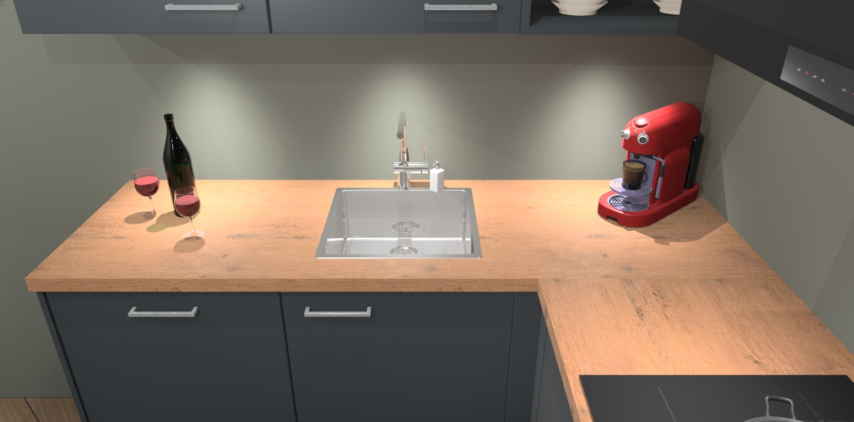 - Bij een hoekwerkblad zijn de hoeken in gevreesd en op maat gemaakt