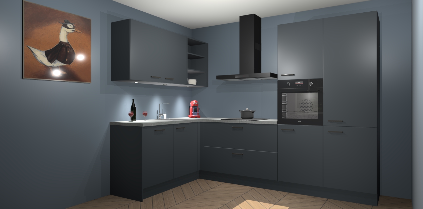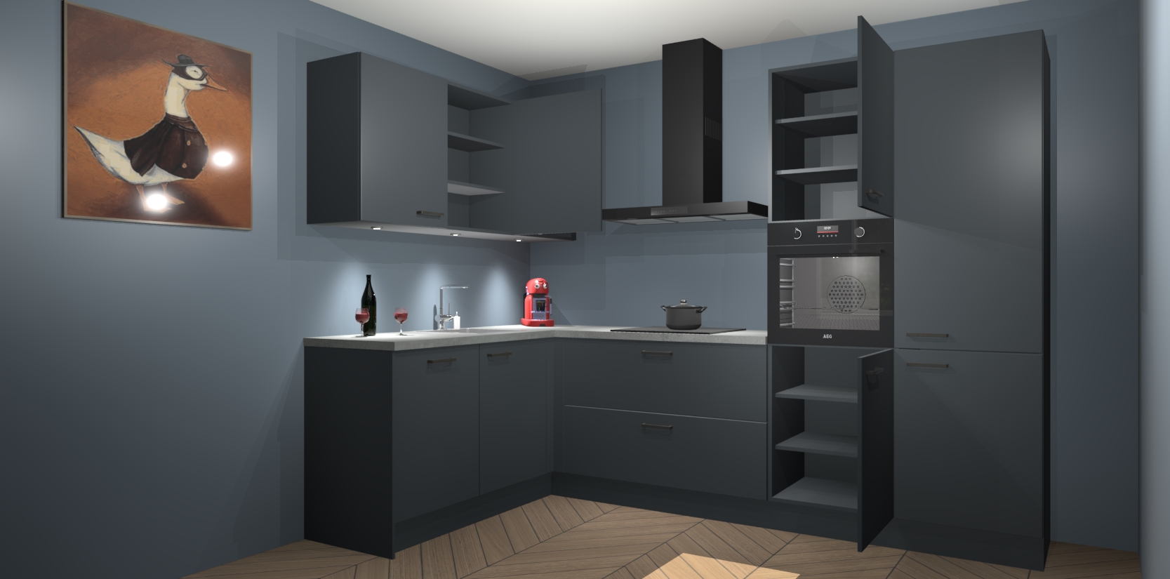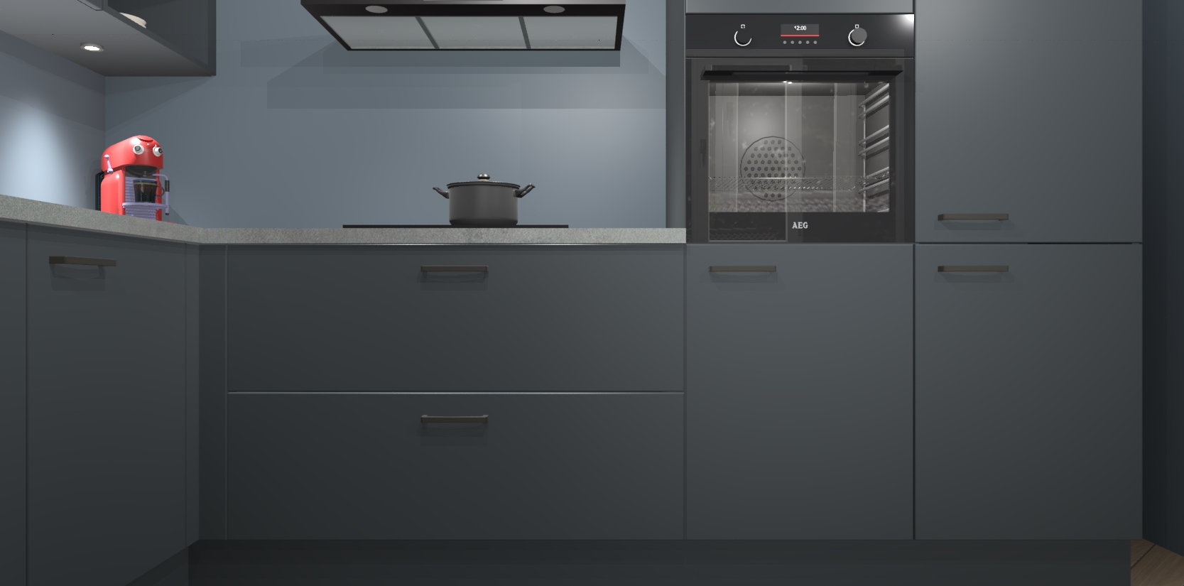 De Onyxgrijze keuken Cognac is een adembenemend ontwerp met een modern en tijdloos uiterlijk. Deze luxe keuken straalt echt aristocratisch uit, waardoor uw koken plezieriger zal worden! Het prachtige design begint bij de hoekkeuken, wat perfect past bij elk type interieur. Bovendien bevat deze hoogwaardige set vijf inbouwapparaten - van oven tot koelkast - die via bestelling naar AEG geüpgraded kunnen worden!